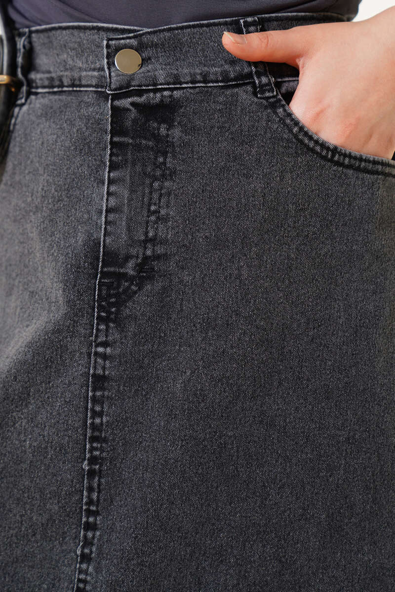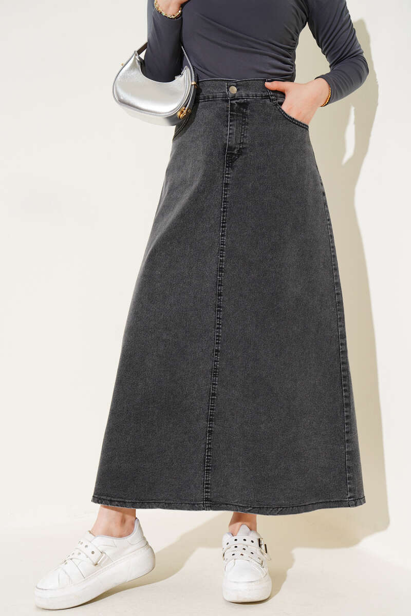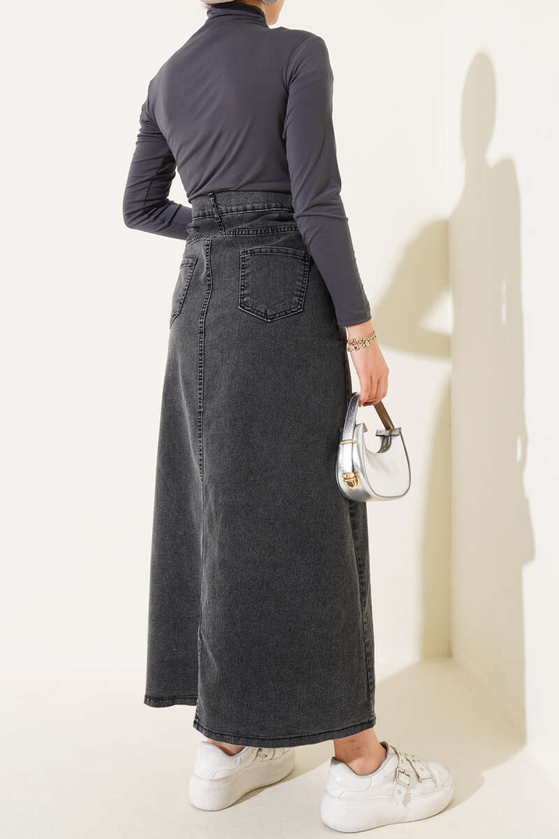 Kemer Aksesuarlı Ekoseli Etek Füme