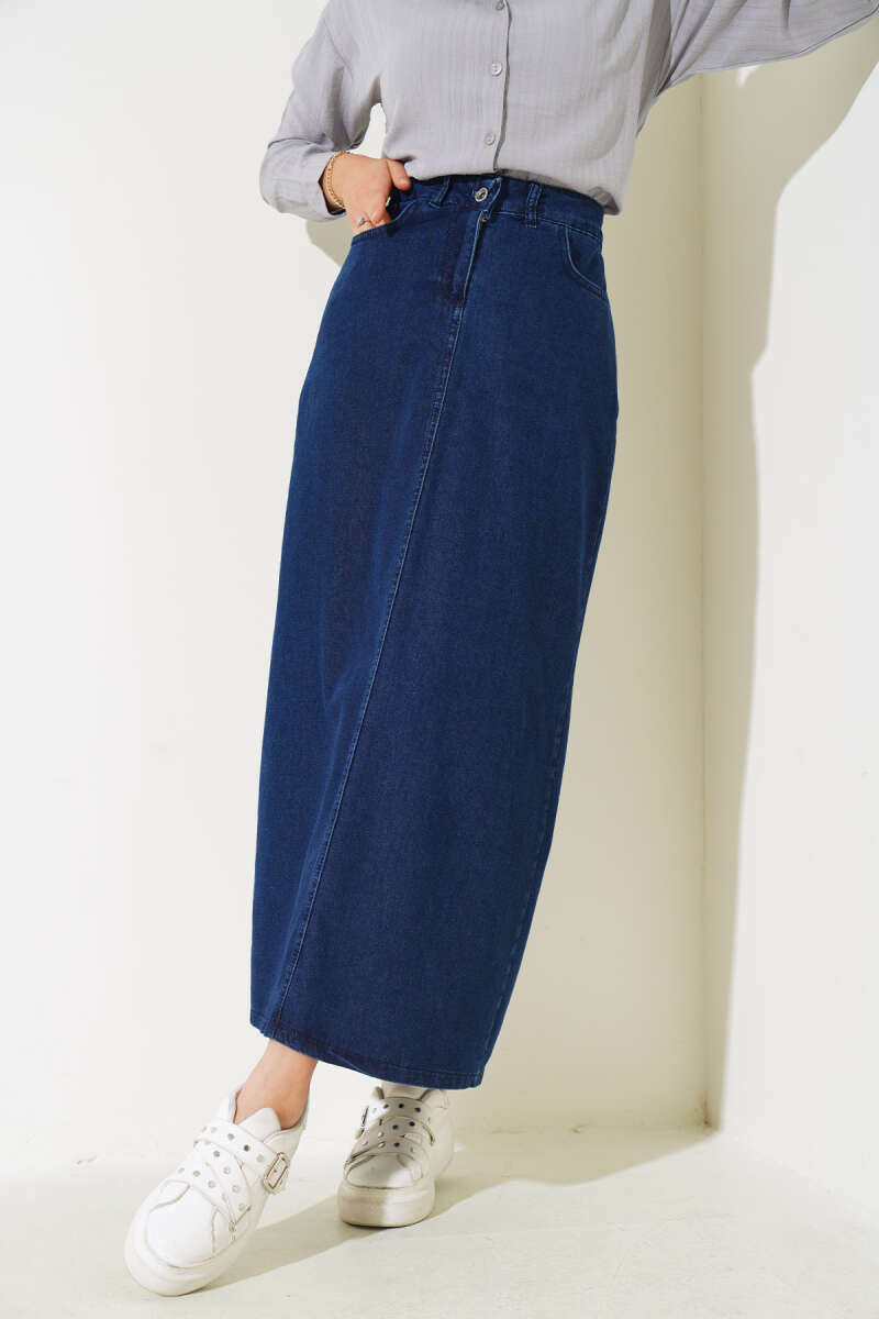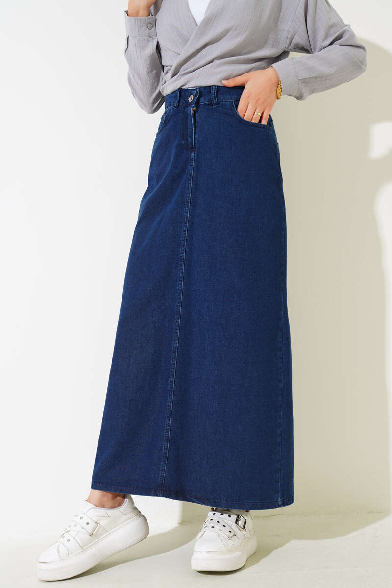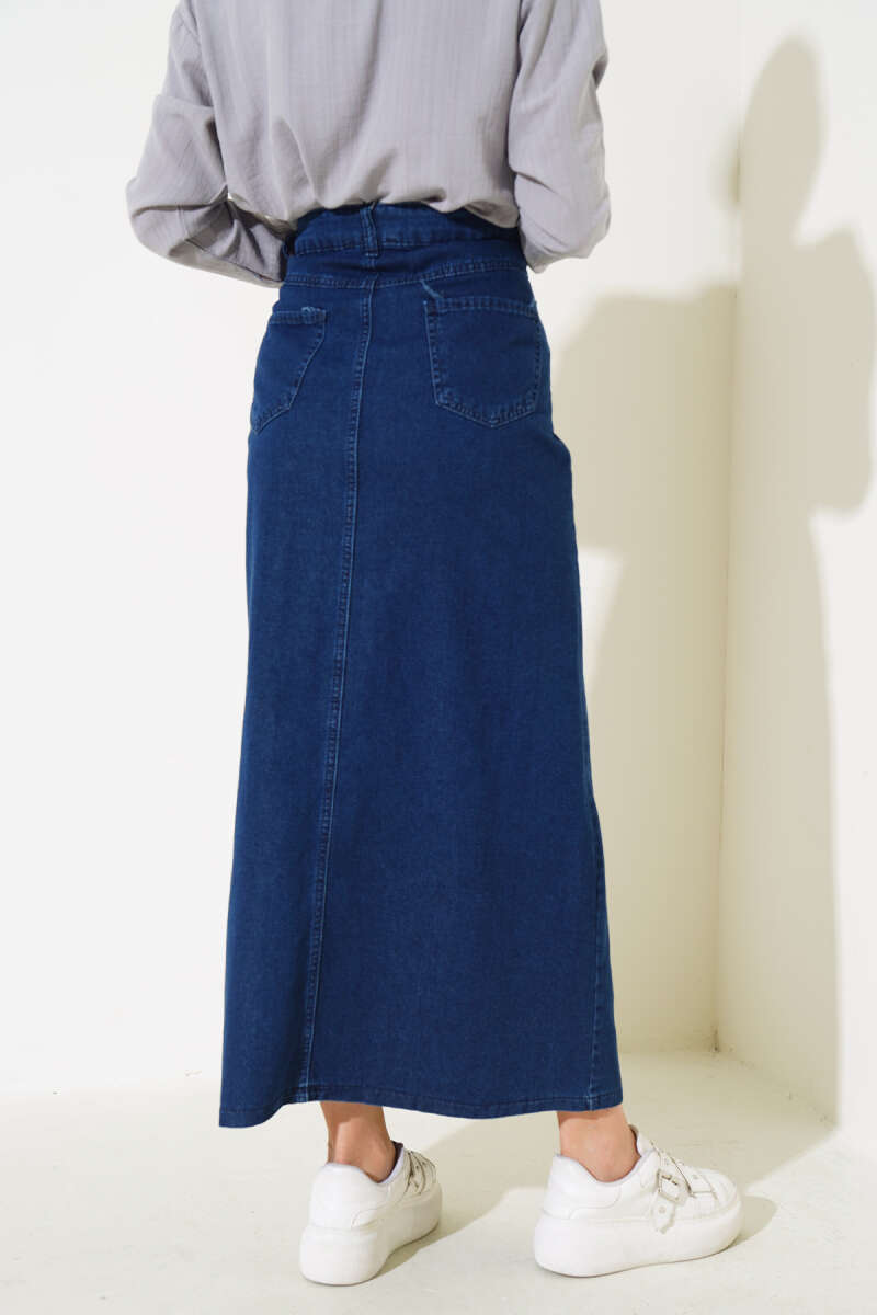 Bel Lastikli Ekoseli Scuba Etek Lacivert