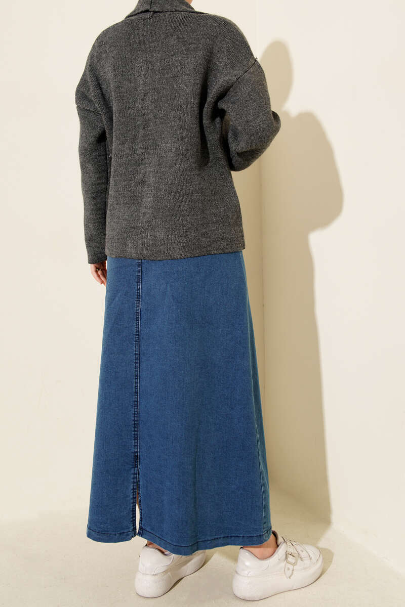 Dikişli Fitilli Kaşe Etek Lacivert