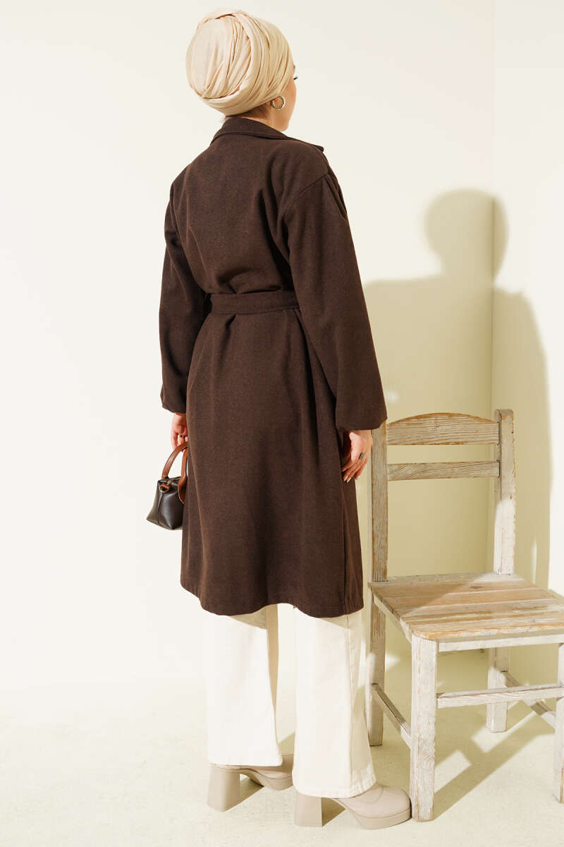 İçi Kürklü Deri Uzun Kaban Acı Kahve