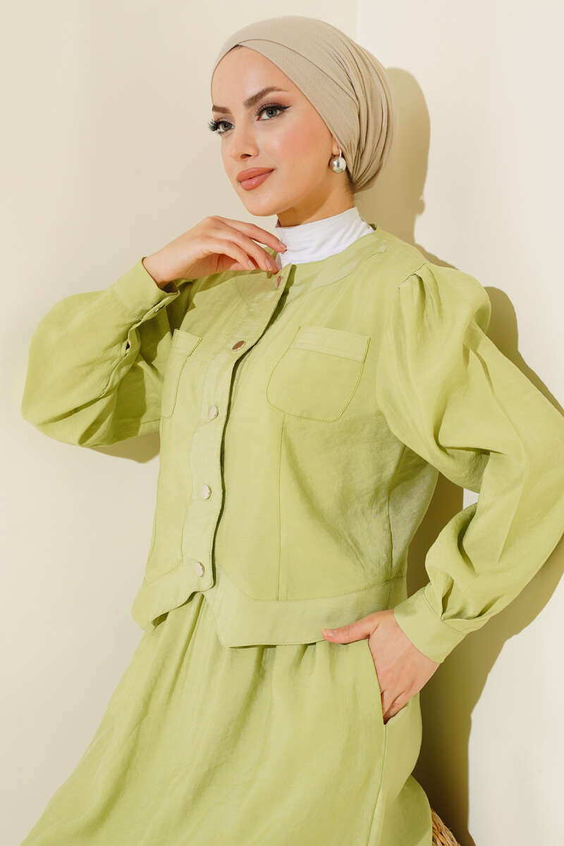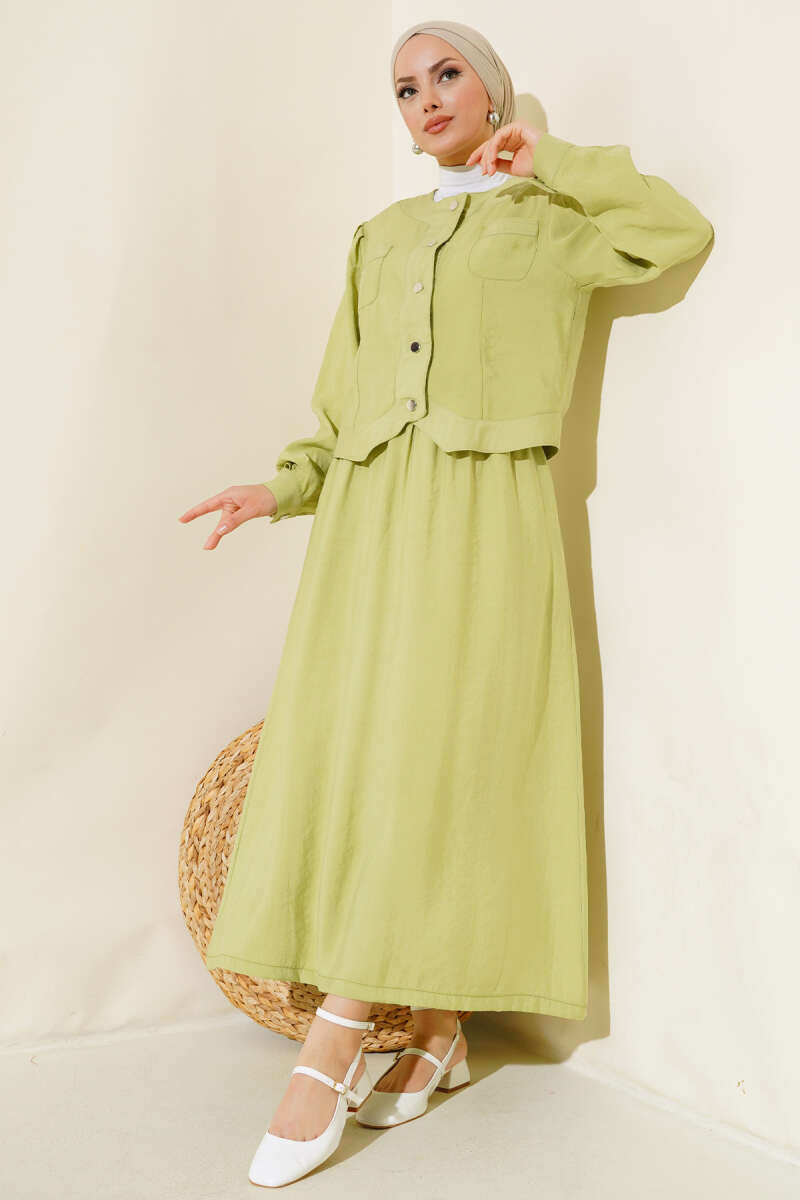 Önü Bağcık Detaylı Etekli İkili Takım Çağla Yeşili