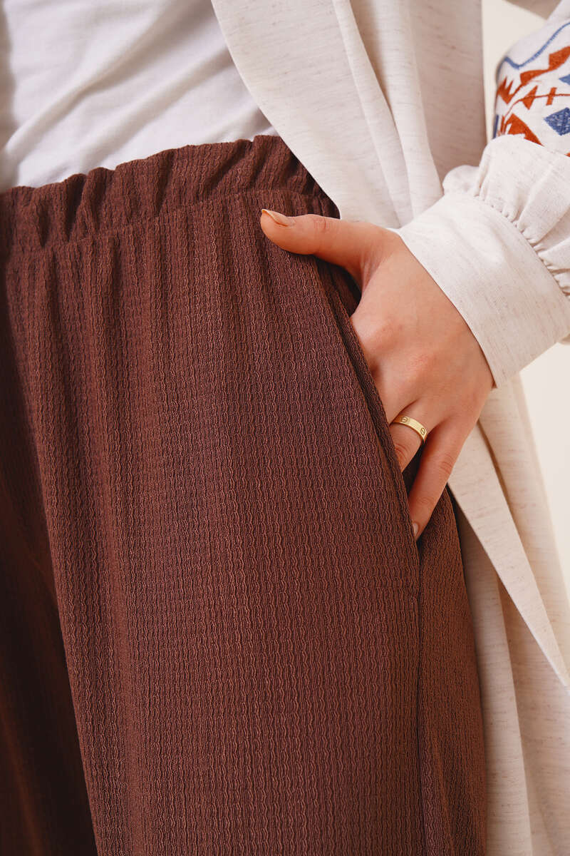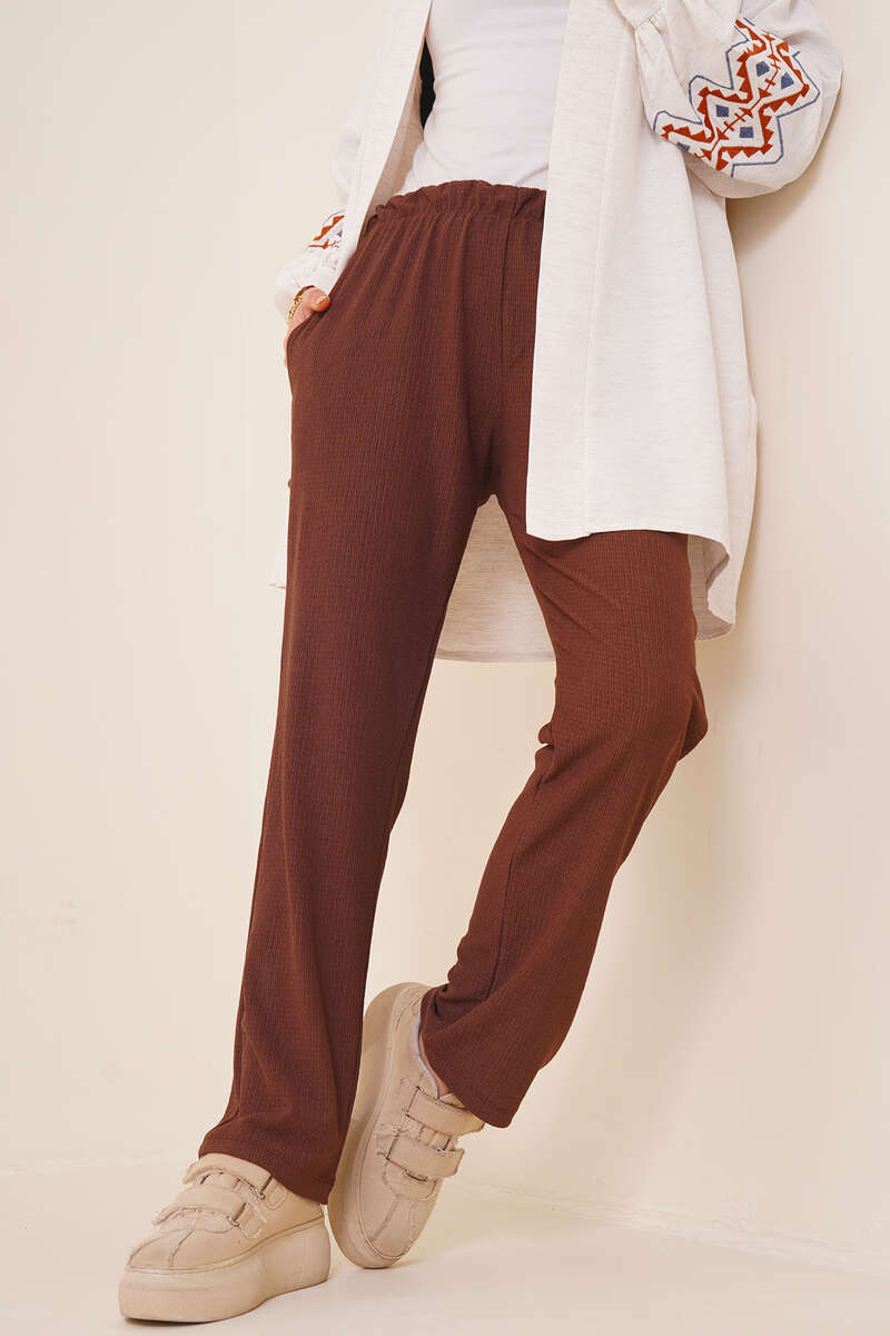 Yeni sezon pantolonumuz kombinlerinizin en güzel parçalarından olacaktır. Pantolonumuz bürümcük kumaştan yapılmıştır. İki cebi bulunmaktadır. Beli lastiklidir. Salaş ve oldukça rahattır. Farklı renk seçenekleri mevcuttur.