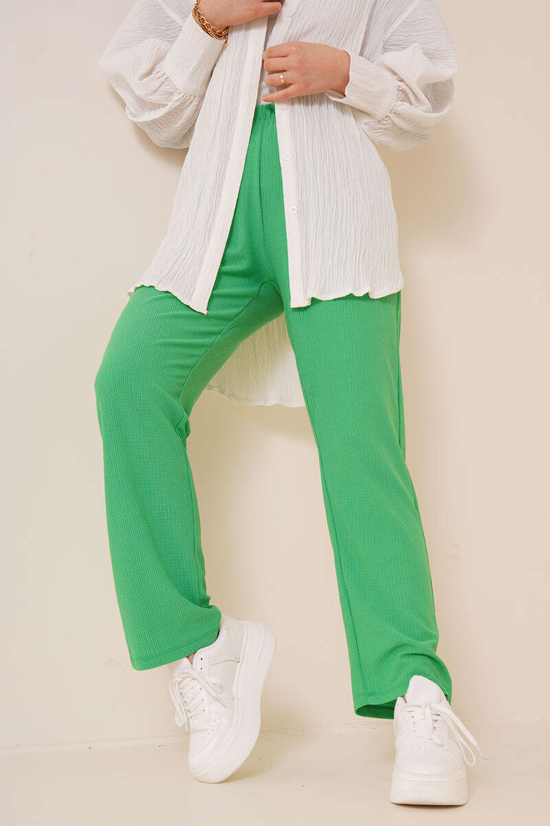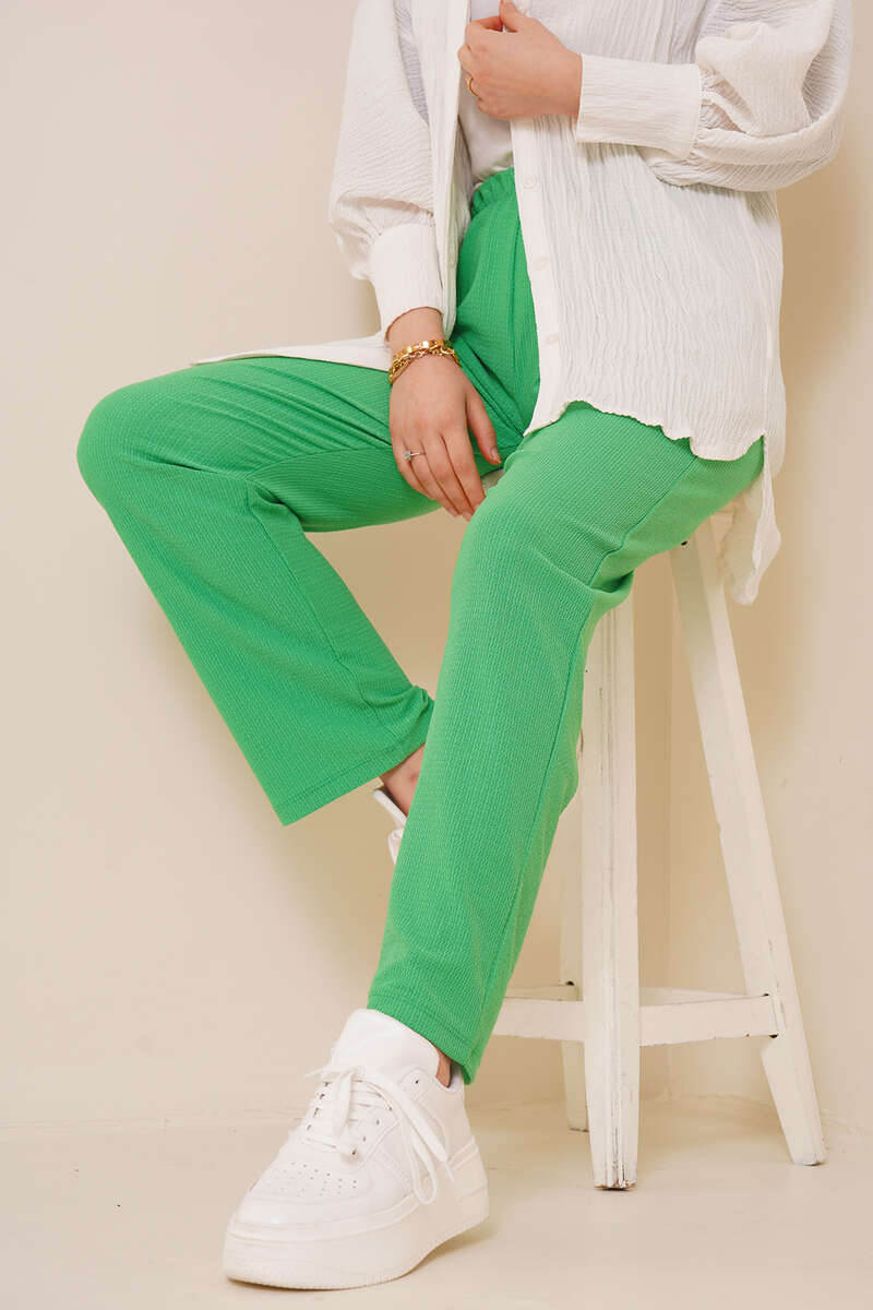 Yeni sezon pantolonumuz kombinlerinizin en güzel parçalarından olacaktır. Pantolonumuz bürümcük kumaştan yapılmıştır. İki cebi bulunmaktadır. Beli lastiklidir. Salaş ve oldukça rahattır. Farklı renk seçenekleri mevcuttur.
