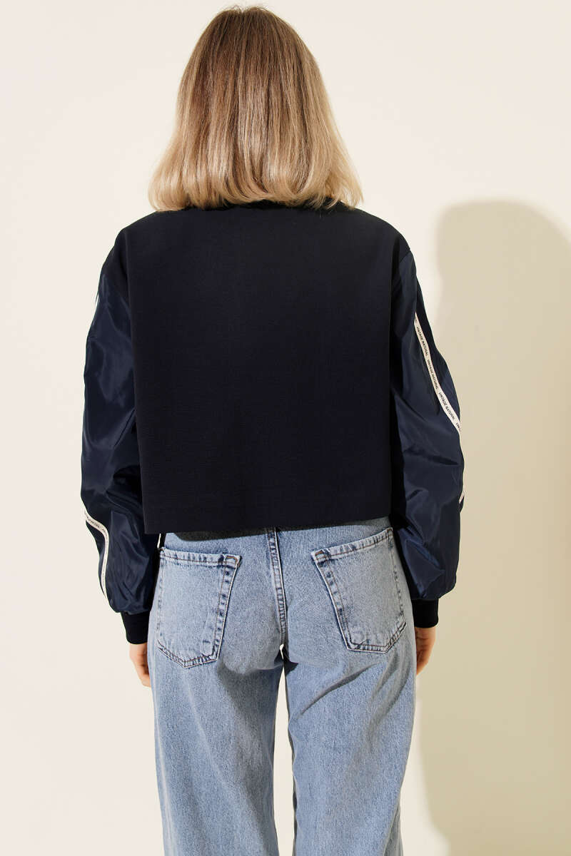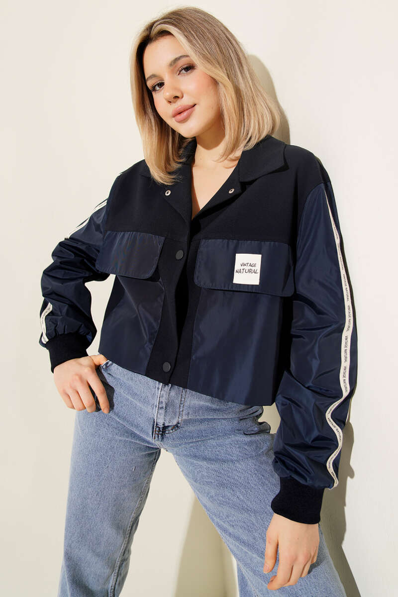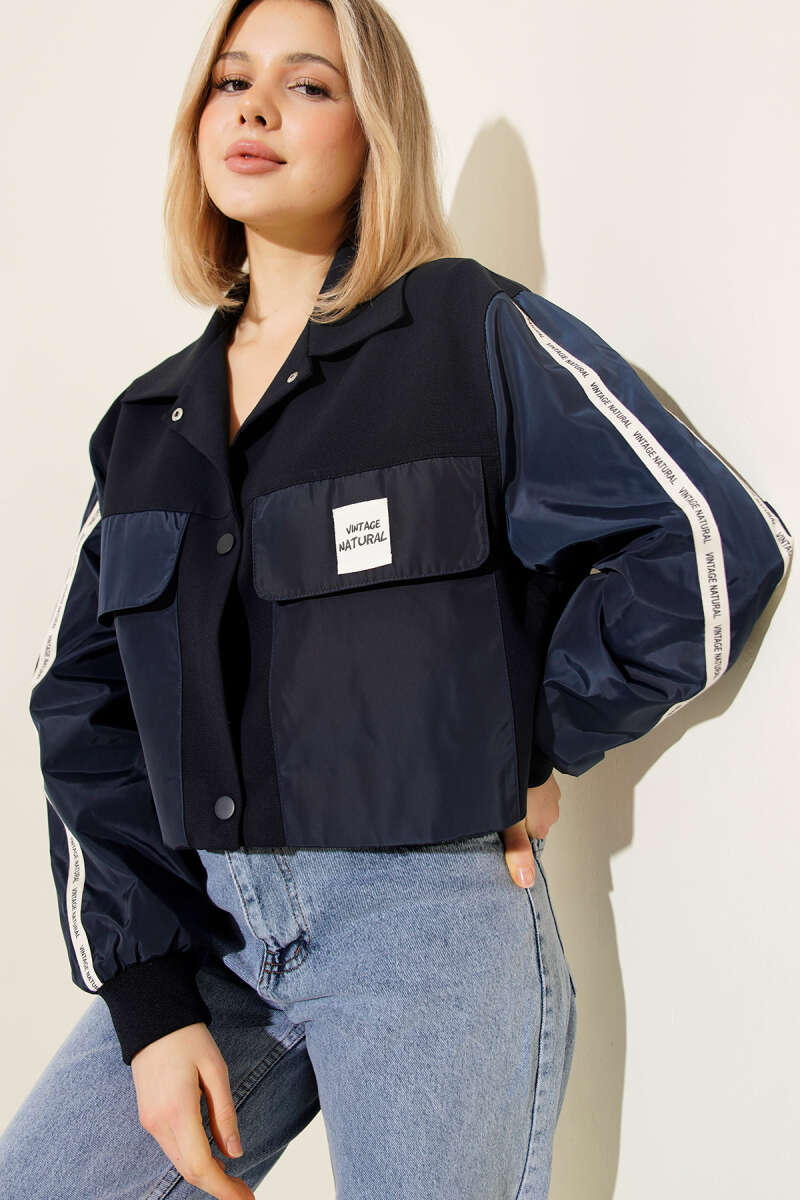 Cepli Şerit Yazılı Ceket Lacivert