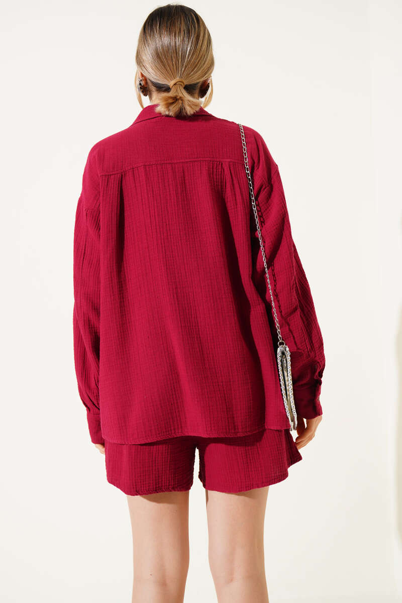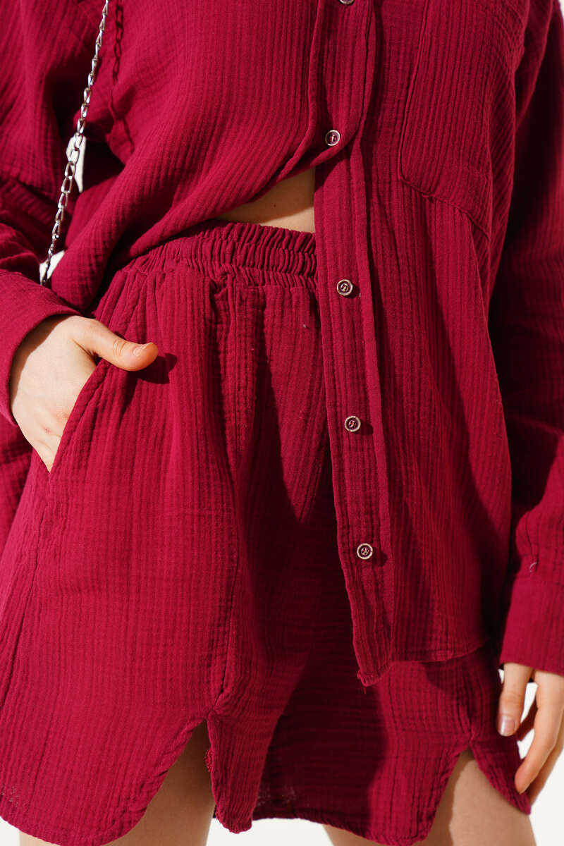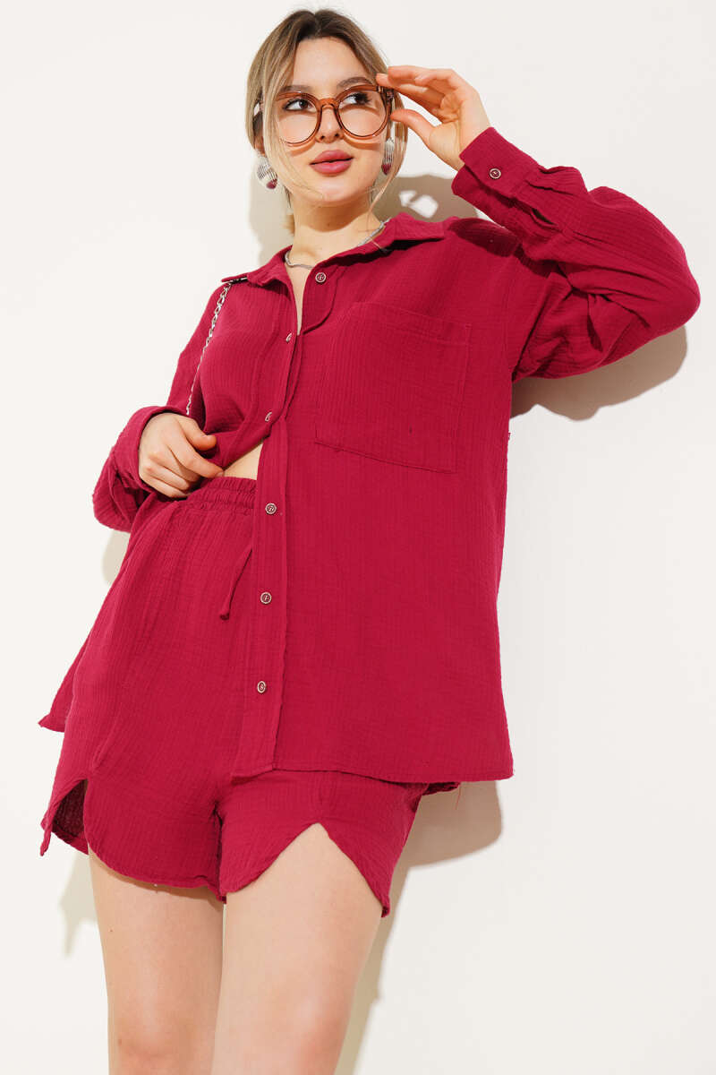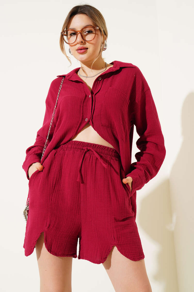 Cepli Şortlu Müslin İkili Takım Bordo