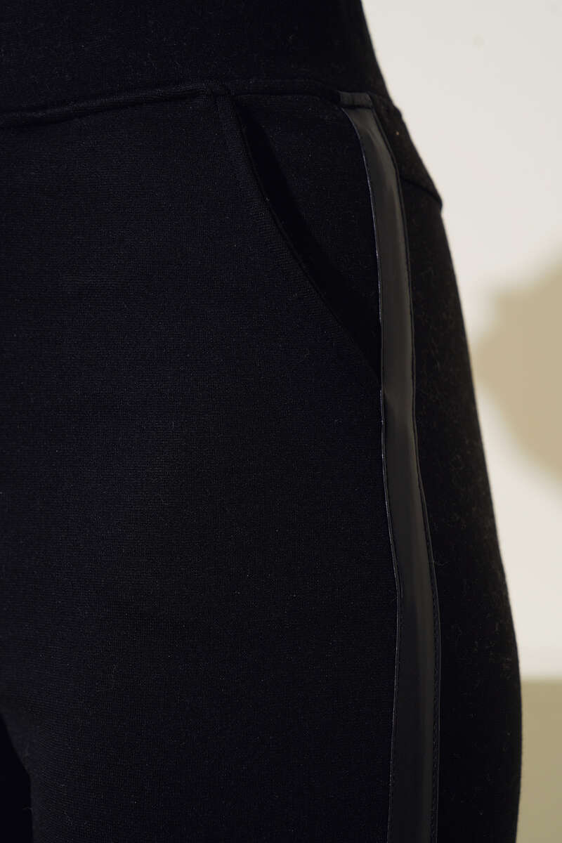 Yeni sezon taytımız dar modeldir. Esneme payı bulunmaktadır. Taytımızın yanlarında deri detaylı şeritler bulunmaktadır. İki adet cebi kullanılabilir. İç göstermeyen taytımız yüksek beldir.