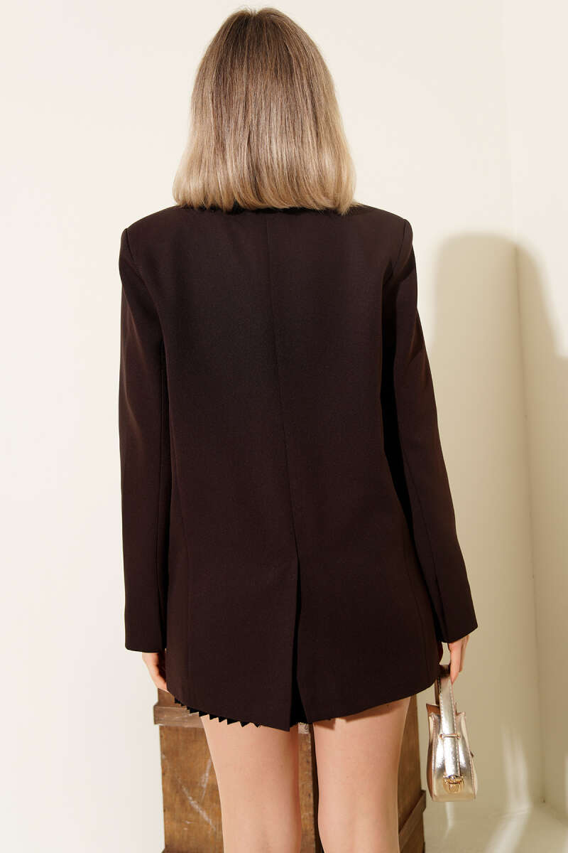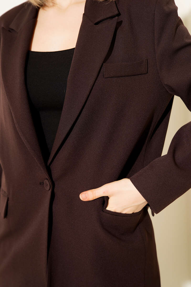 Cepli Tek Düğmeli Blazer Ceket Kahve