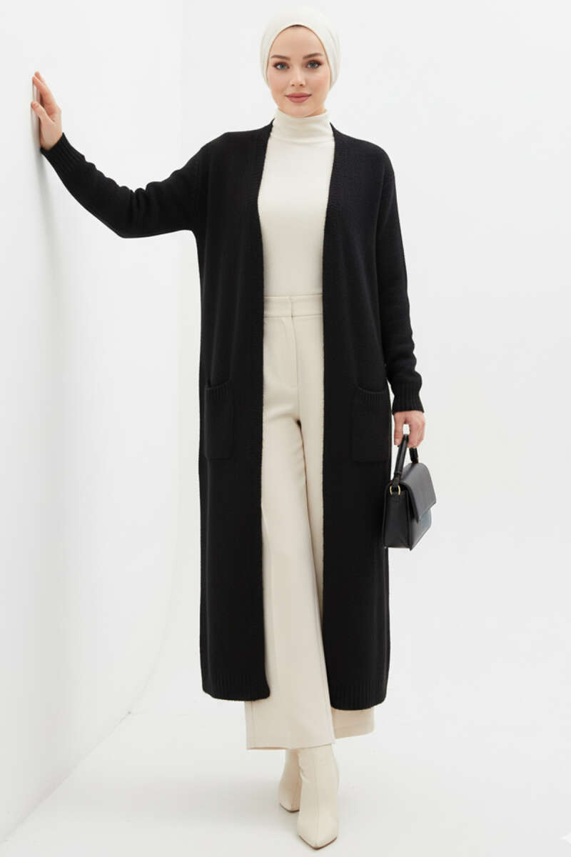 Metal Düğmeli Uzun Sakallı Hırka Kahve