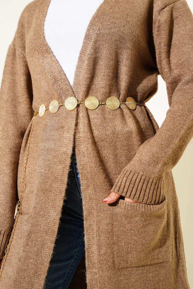 Bel Lastikli Sakallı Triko Yelek Sarı