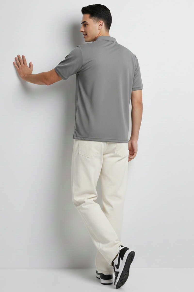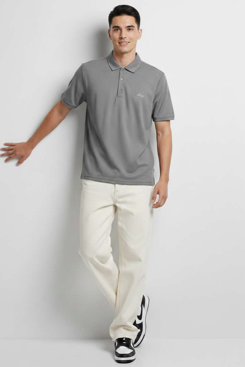Polo Yaka Garnili Erkek T-shirt Gri