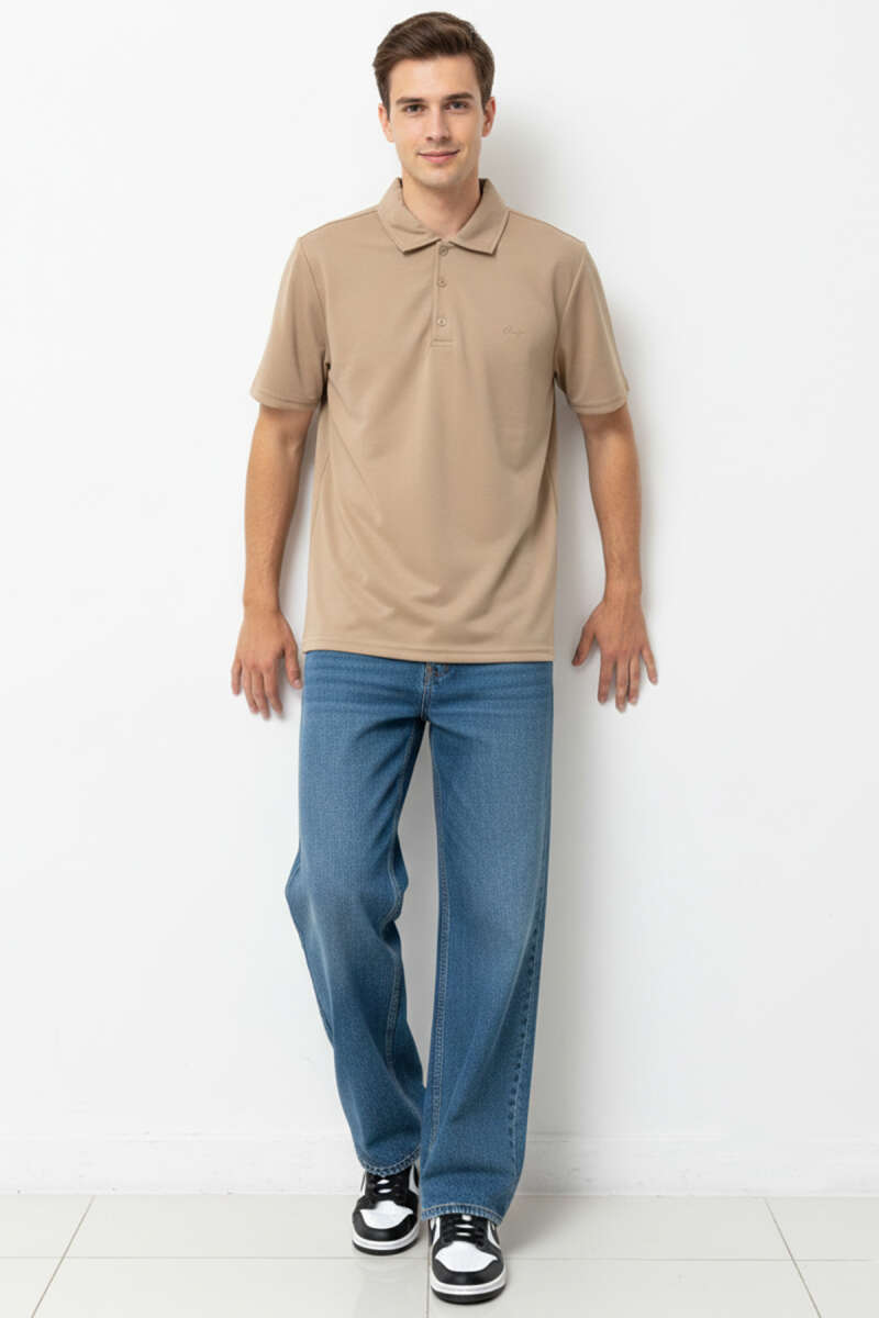 Change Baskılı Polo Yaka Erkek T-shirt Kum Bej