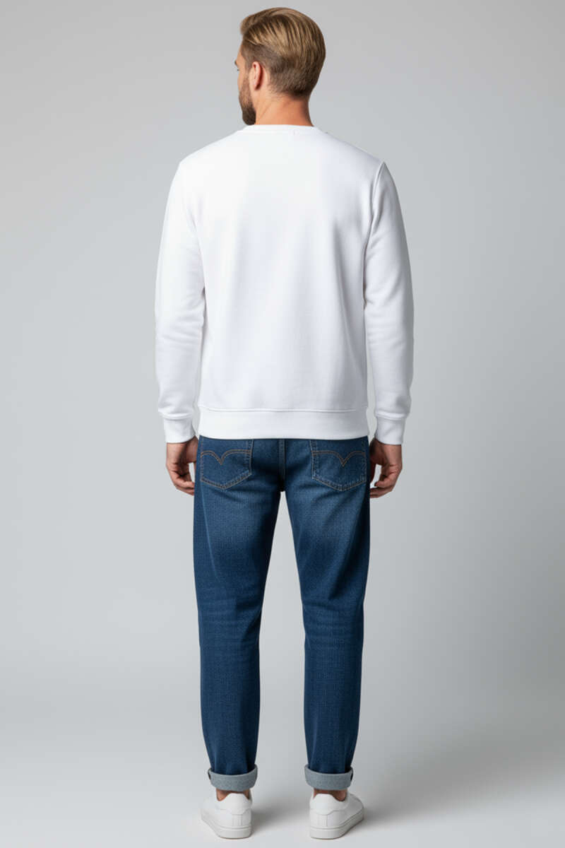 Üç İplik Bisiklet Yaka Erkek Sweatshirt Saks