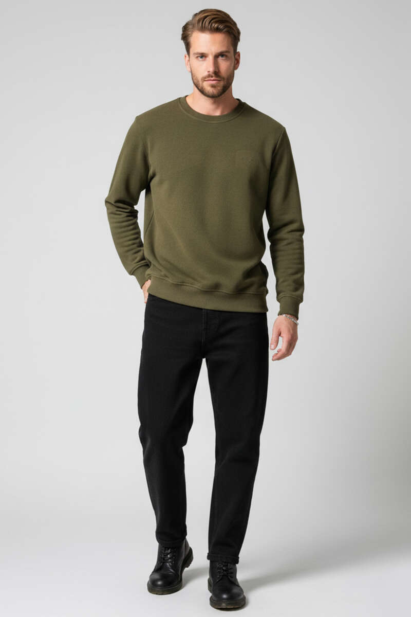 Üç İplik Bisiklet Yaka Erkek Sweatshirt Petrol