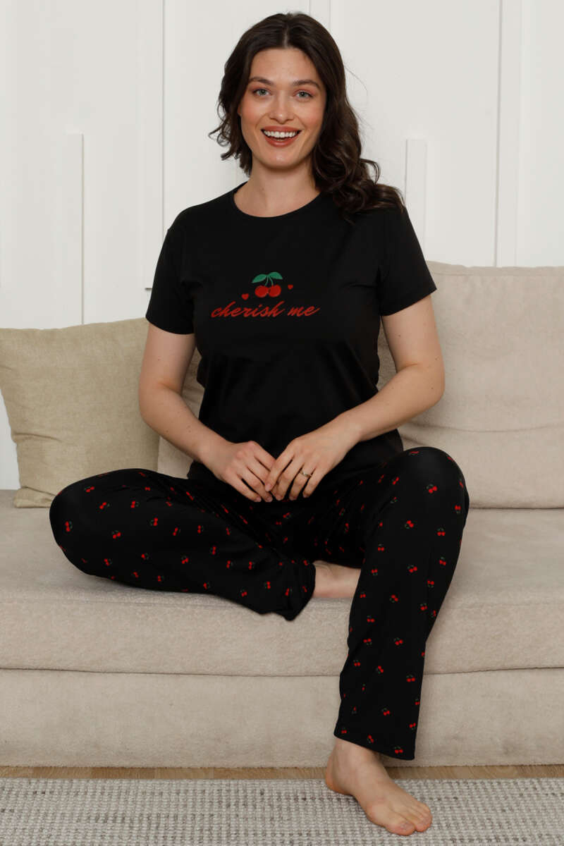 Cherish Me Baskılı Kısa Kol Pijama Takımı Siyah