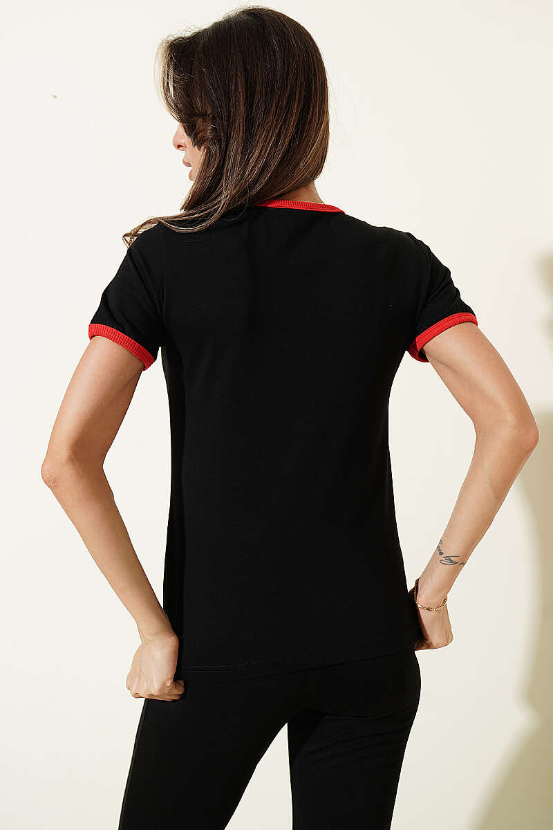 Midilli Nakışlı Modal T-shirt Siyah