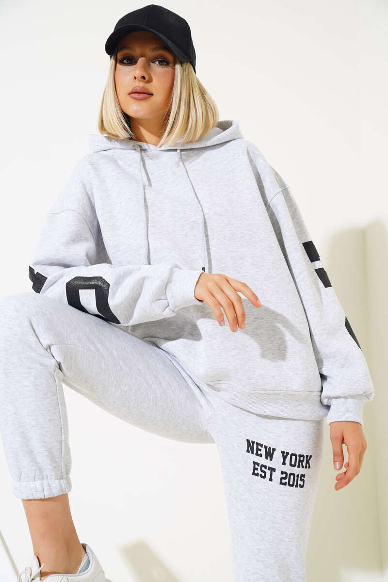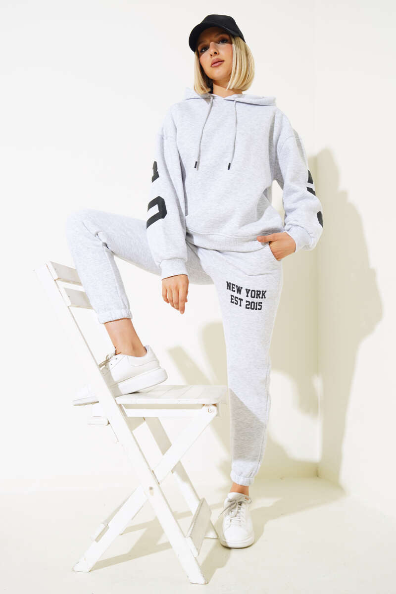 Chicago Yazılı Üç İplik İkili Takım Gri