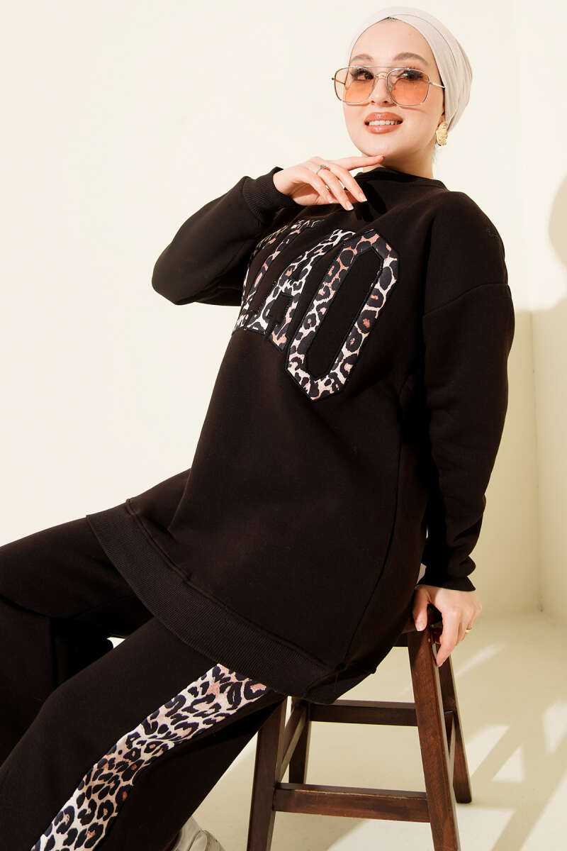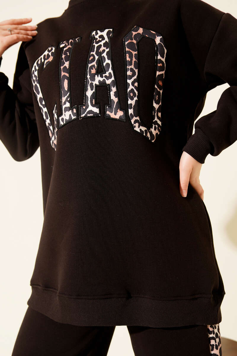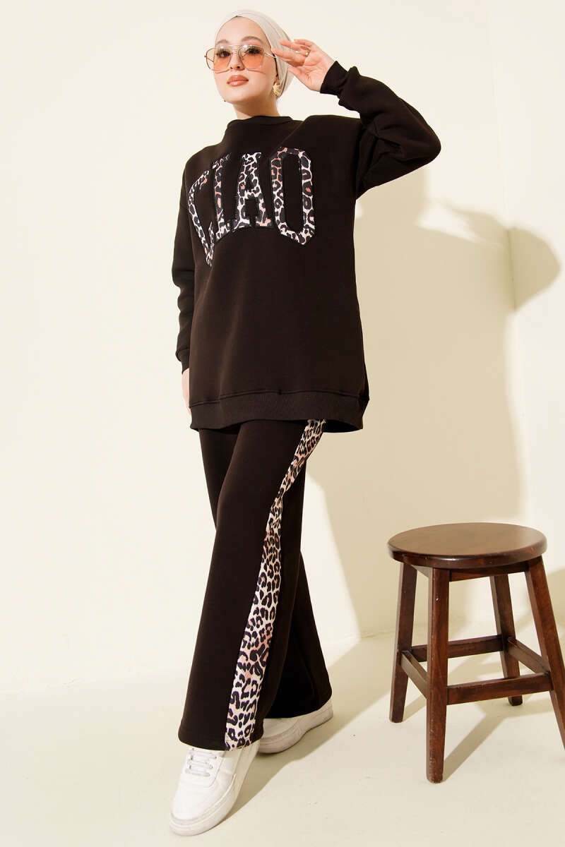 Ciao Leopar Yazılı Üç İplik İkili Takım Saks