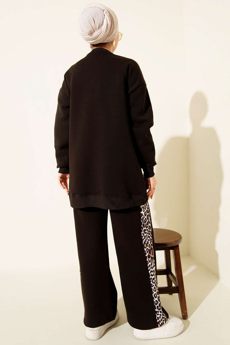 Bisiklet Yaka Fitilli Triko İkili Takım Siyah