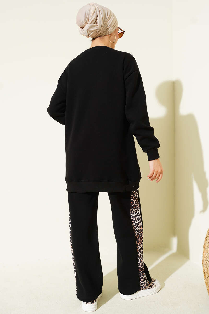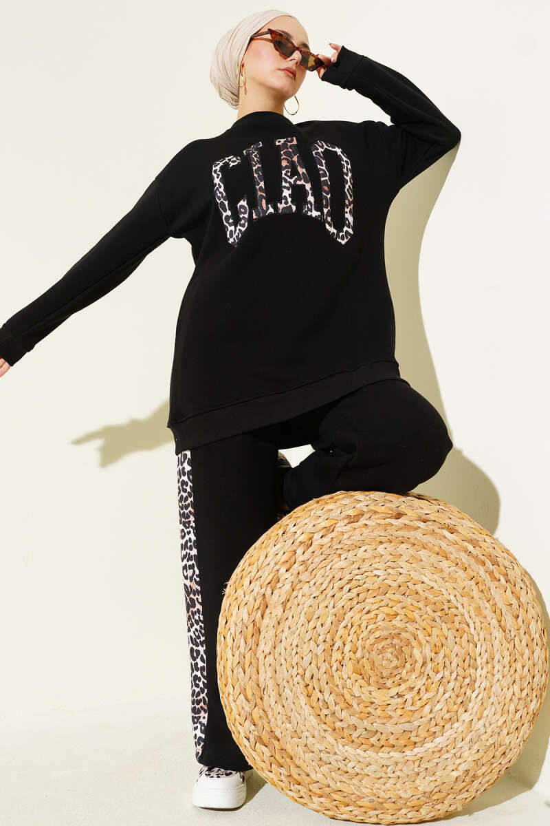 Ciao Leopar Yazılı Üç İplik İkili Takım Saks