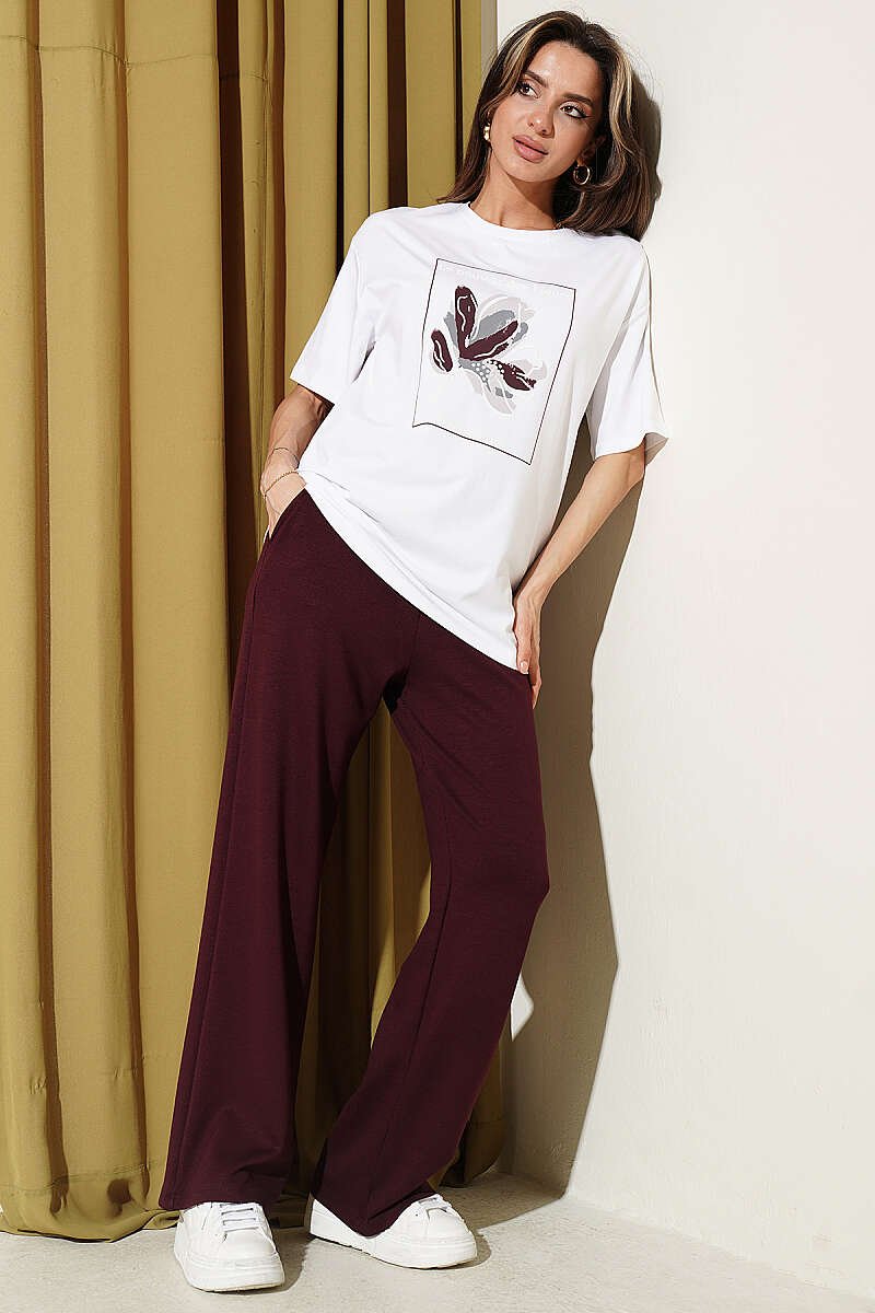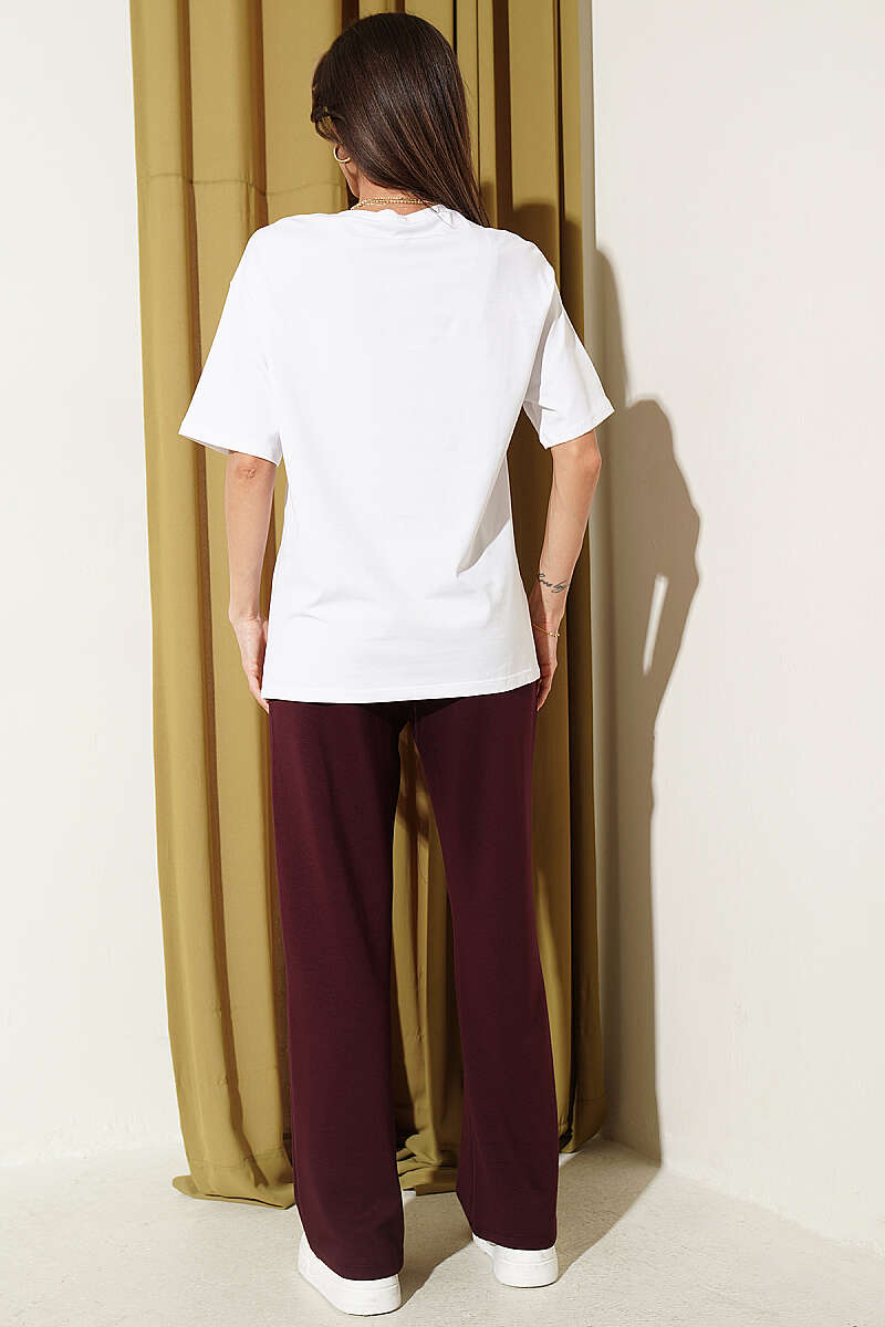 Çiçek Baskılı Loyşa T-shirt İkili Takım Bordo
