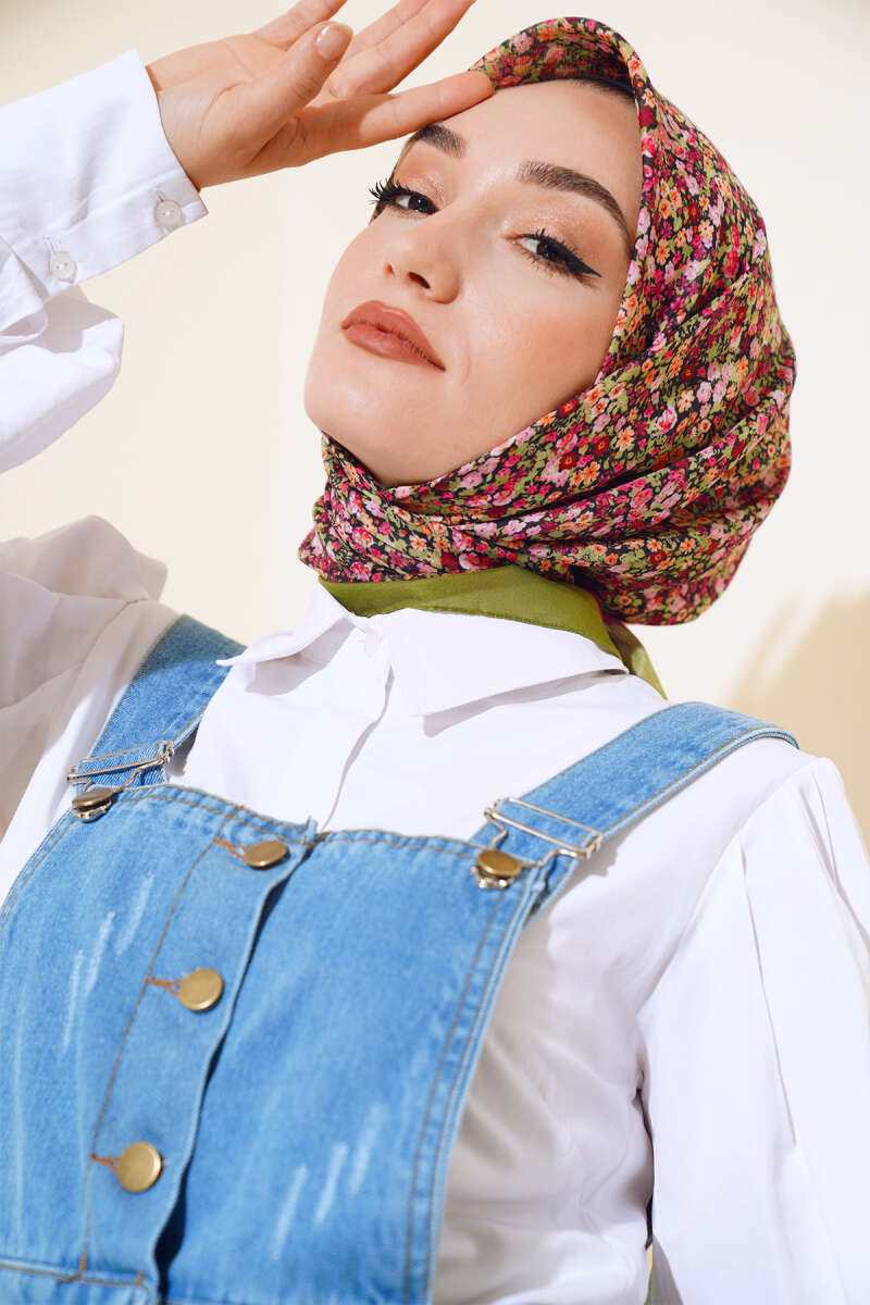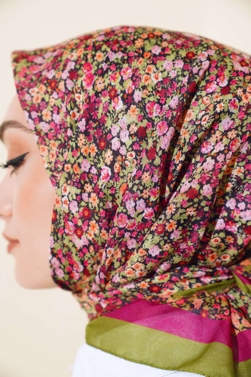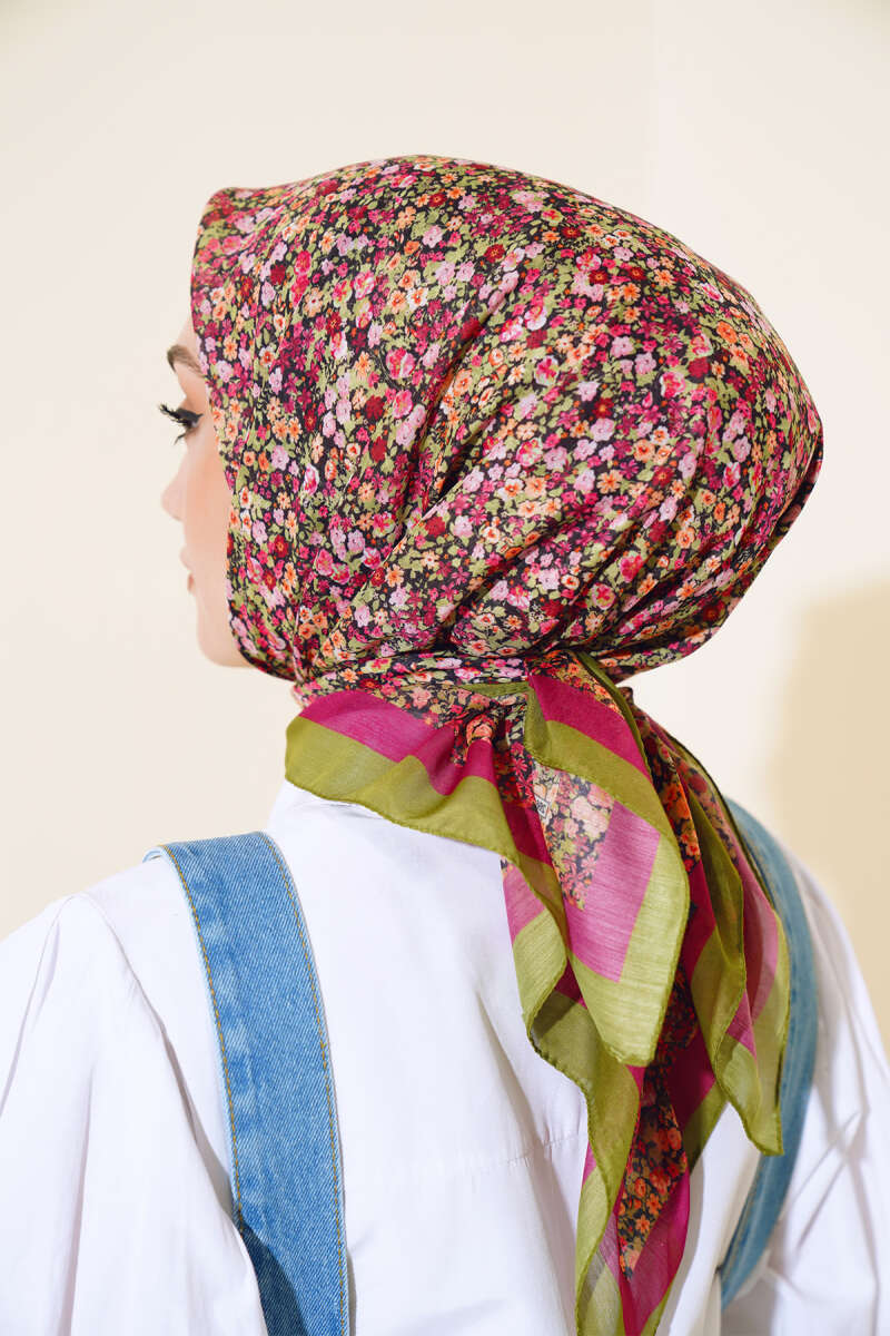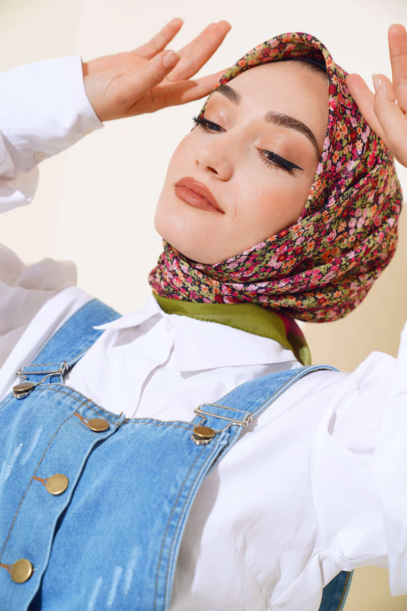 Çiçek Desen Elegance Eşarp Kına Yeşili