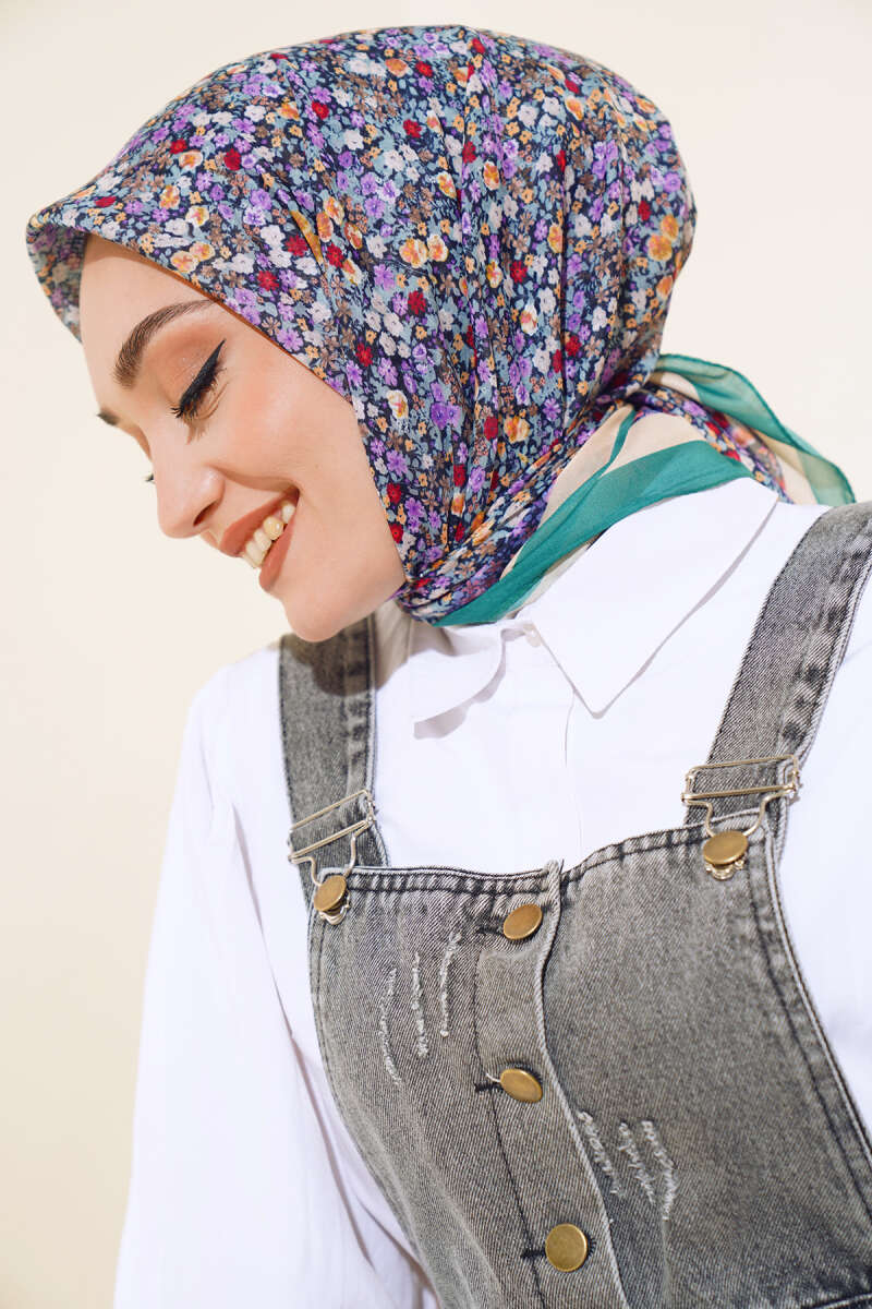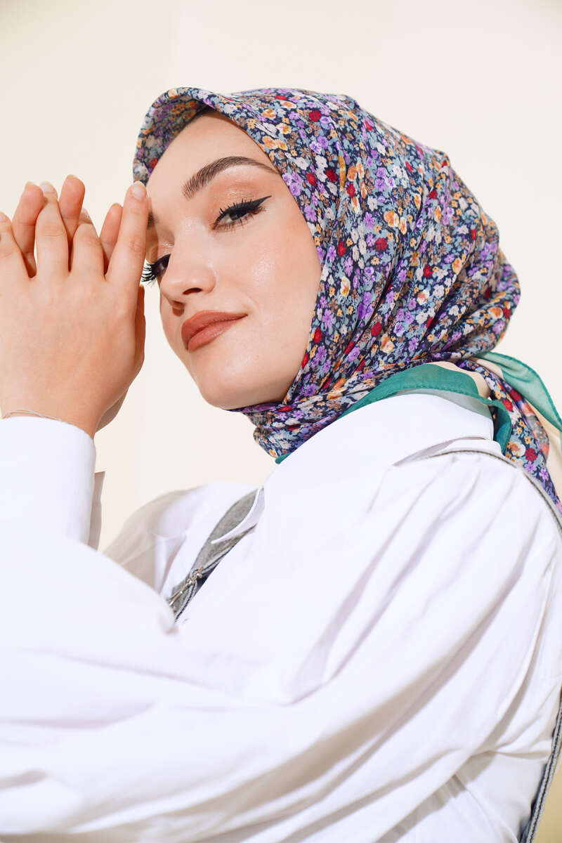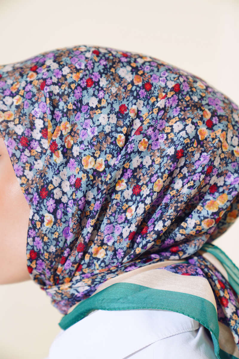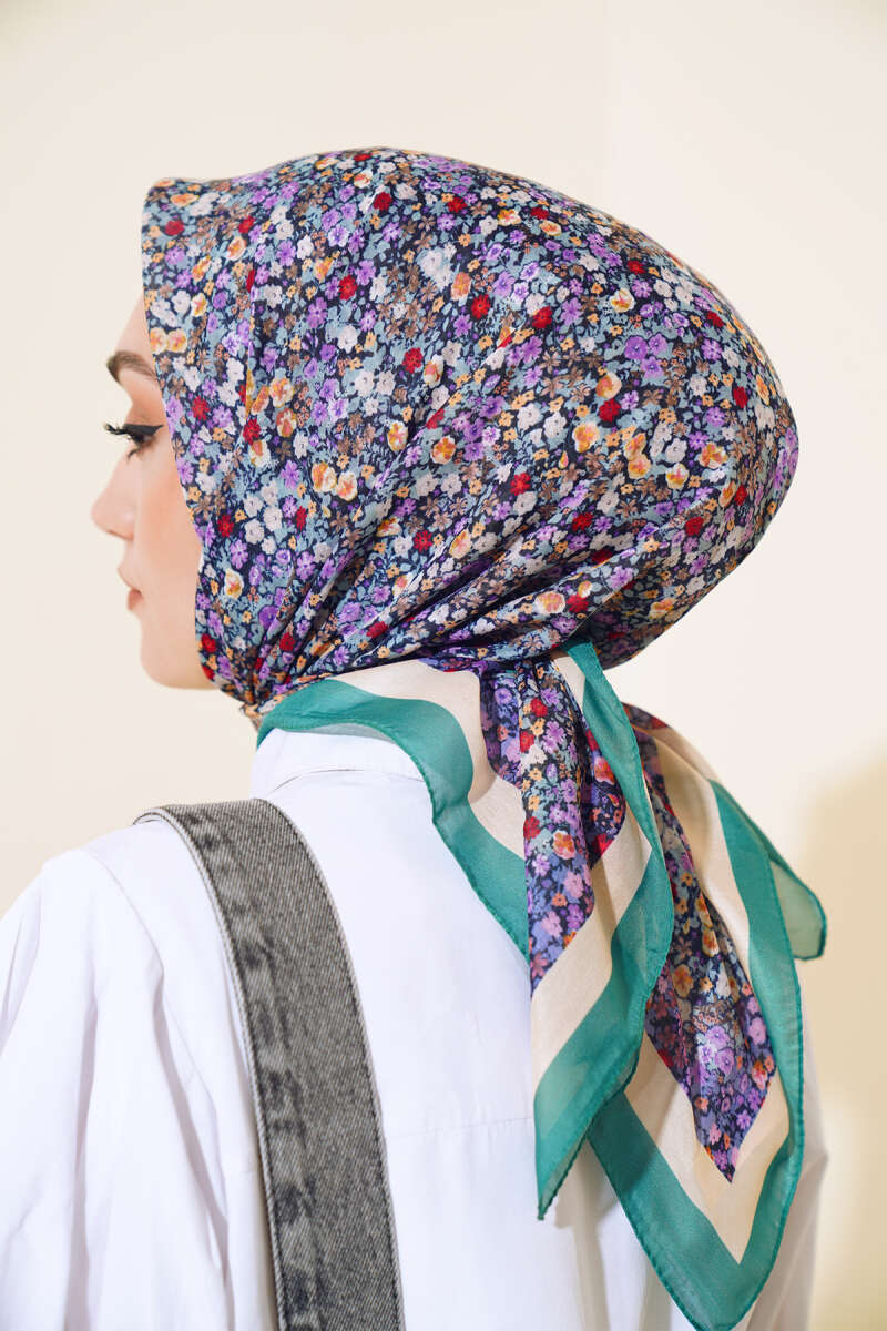 Çiçek Desen Elegance Eşarp Zümrüt Yeşili