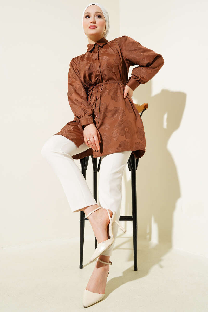 Gizli Düğmeli Bel Kuşaklı Gömlek Bordo