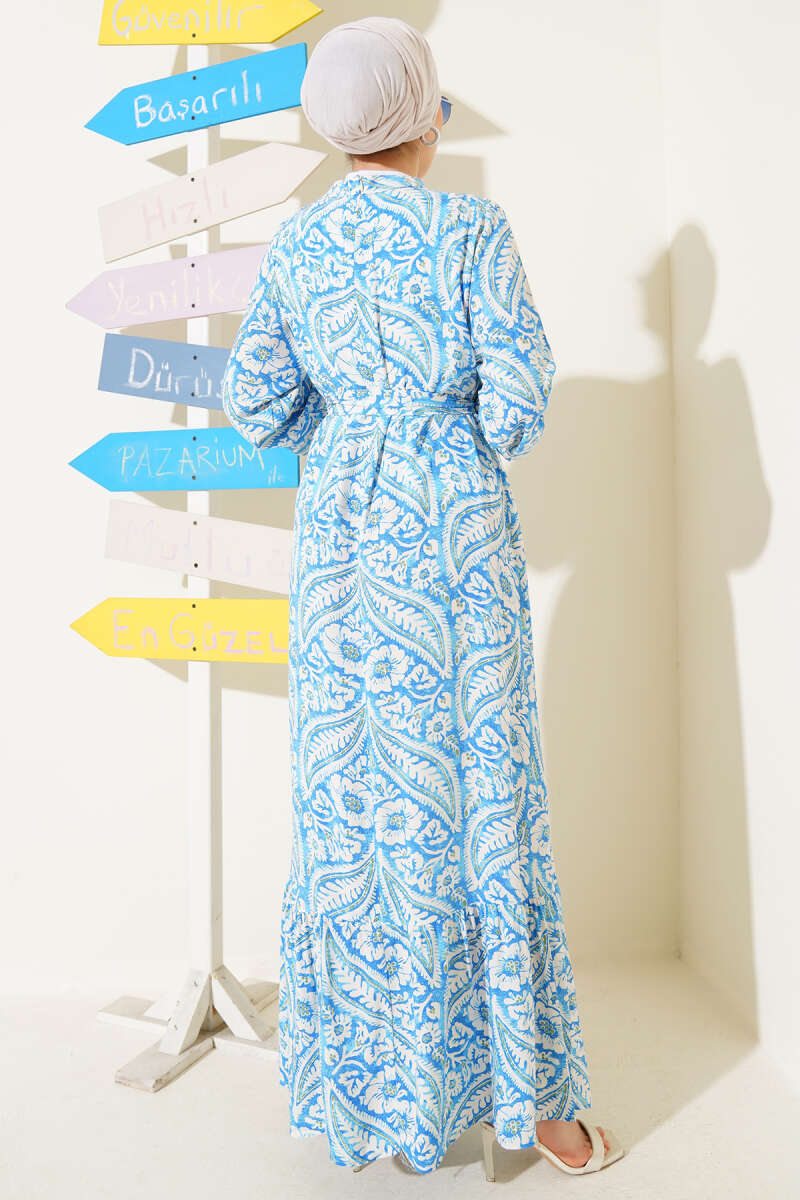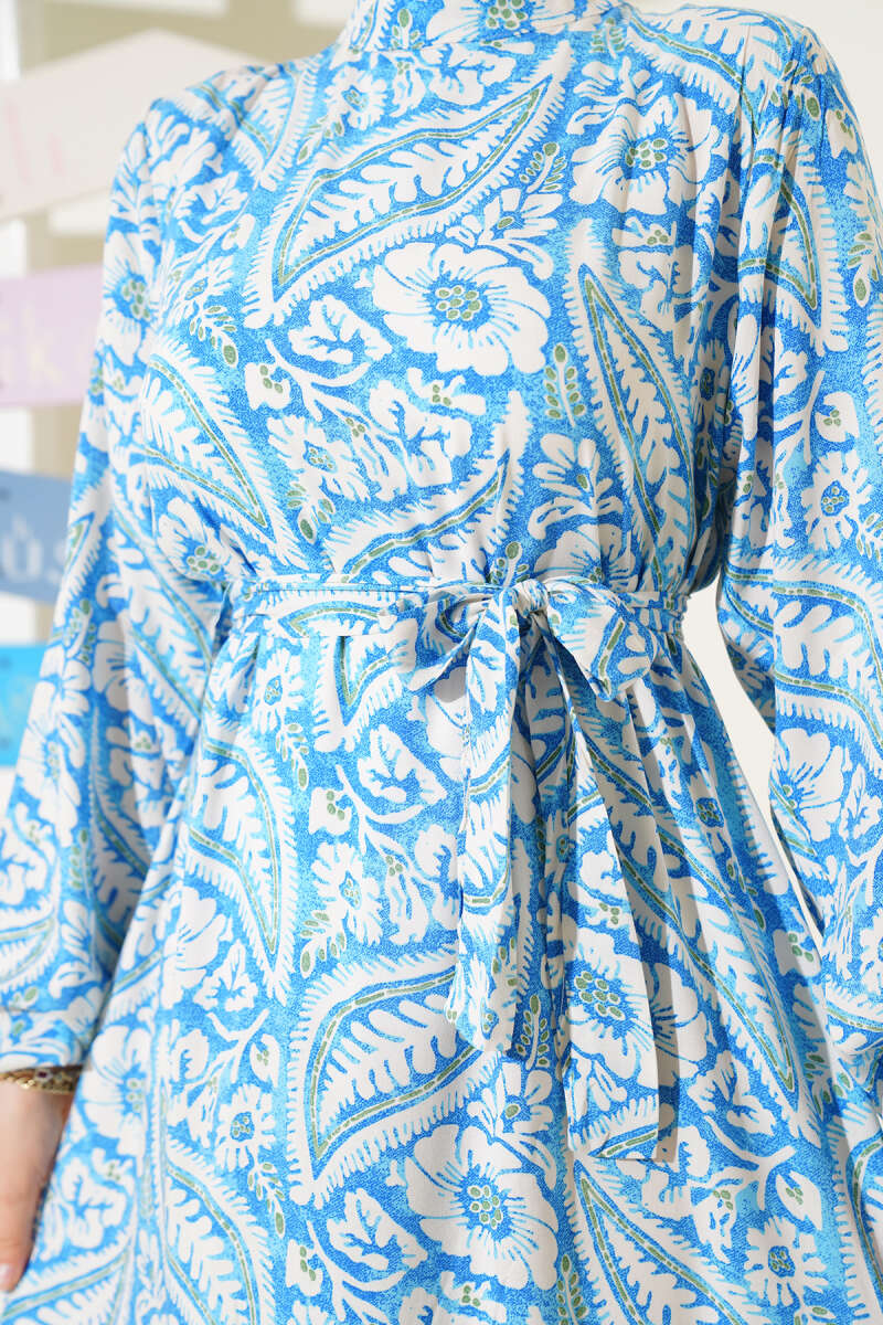 Bilek Bağlamalı Kuşaklı Abiye Elbise Lacivert