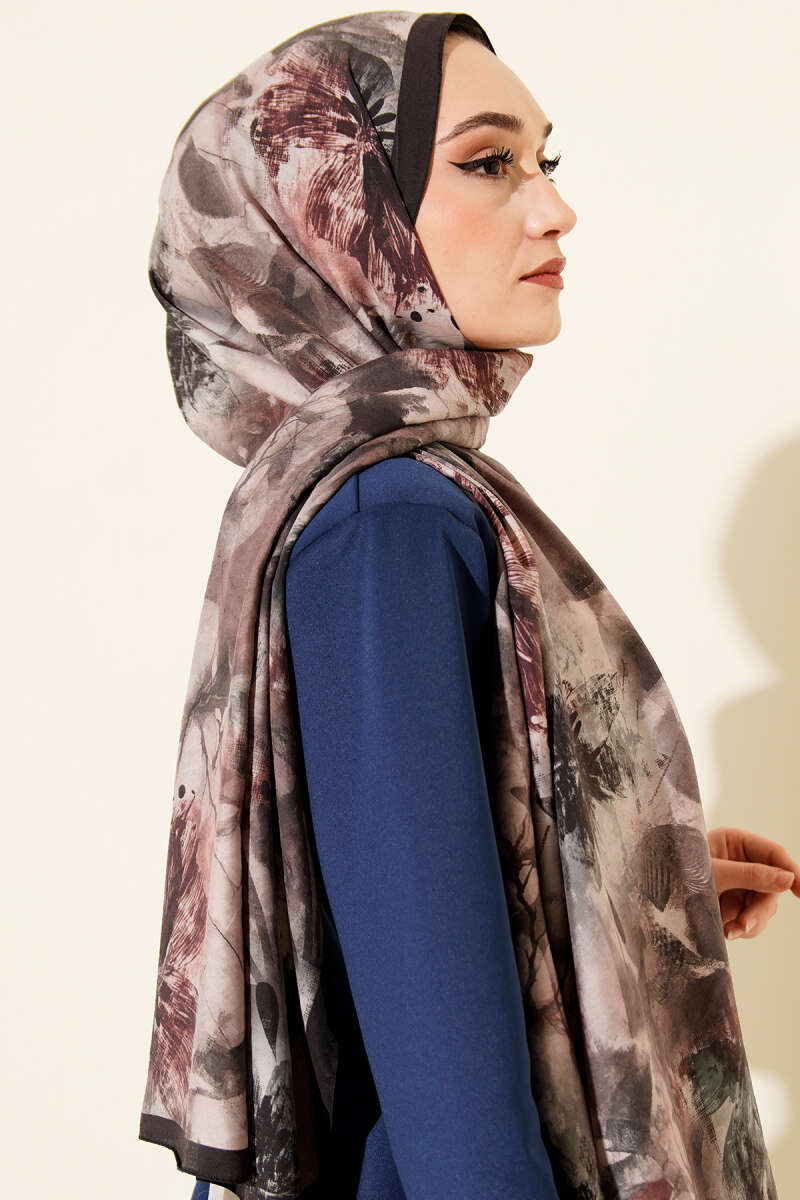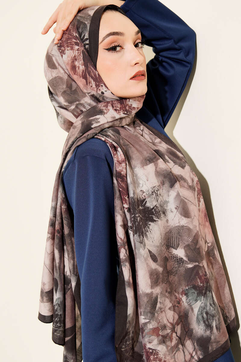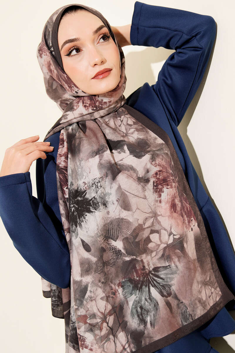 Çiçek Desen Modal Şal Acı Kahve