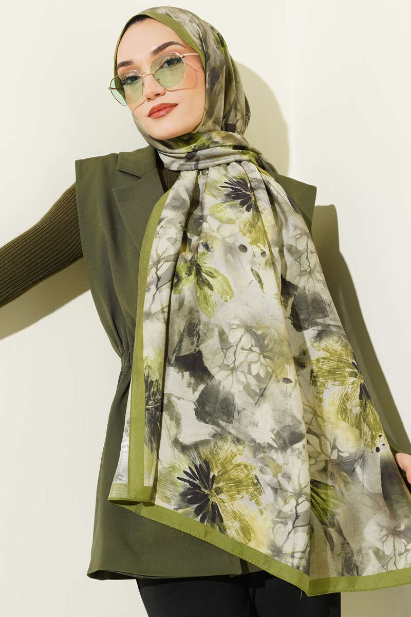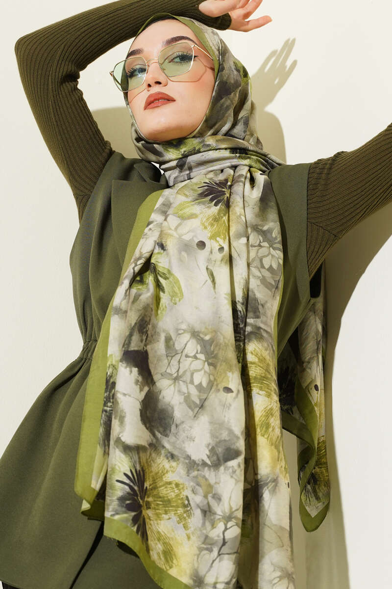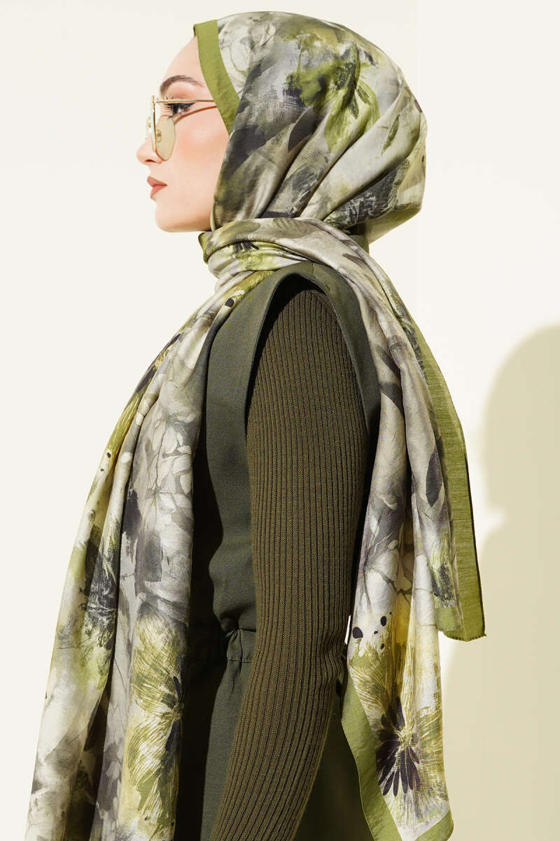 Mini Çiçek Desenli Eşarp Siyah Füme