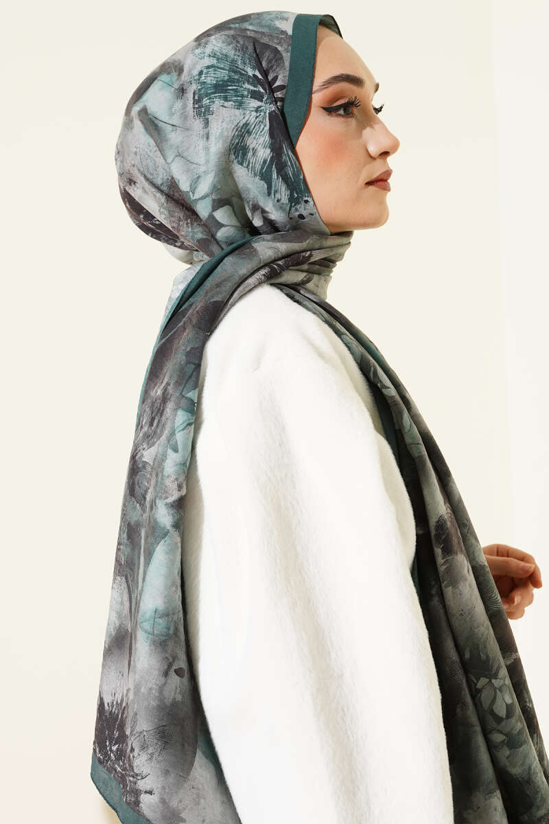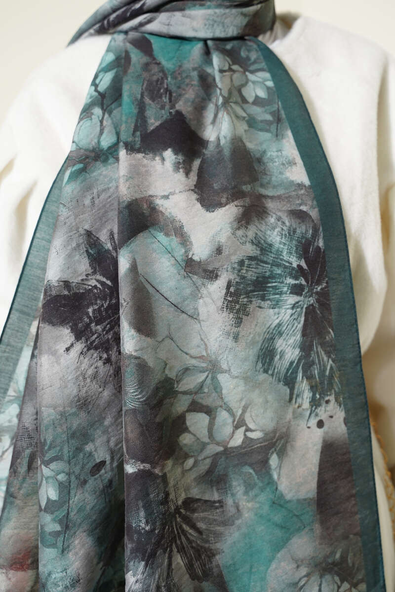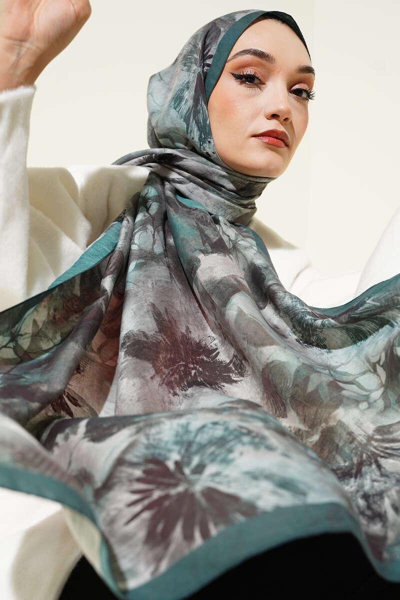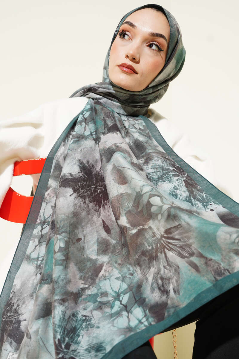 Mini Çiçek Desenli Eşarp Siyah Füme