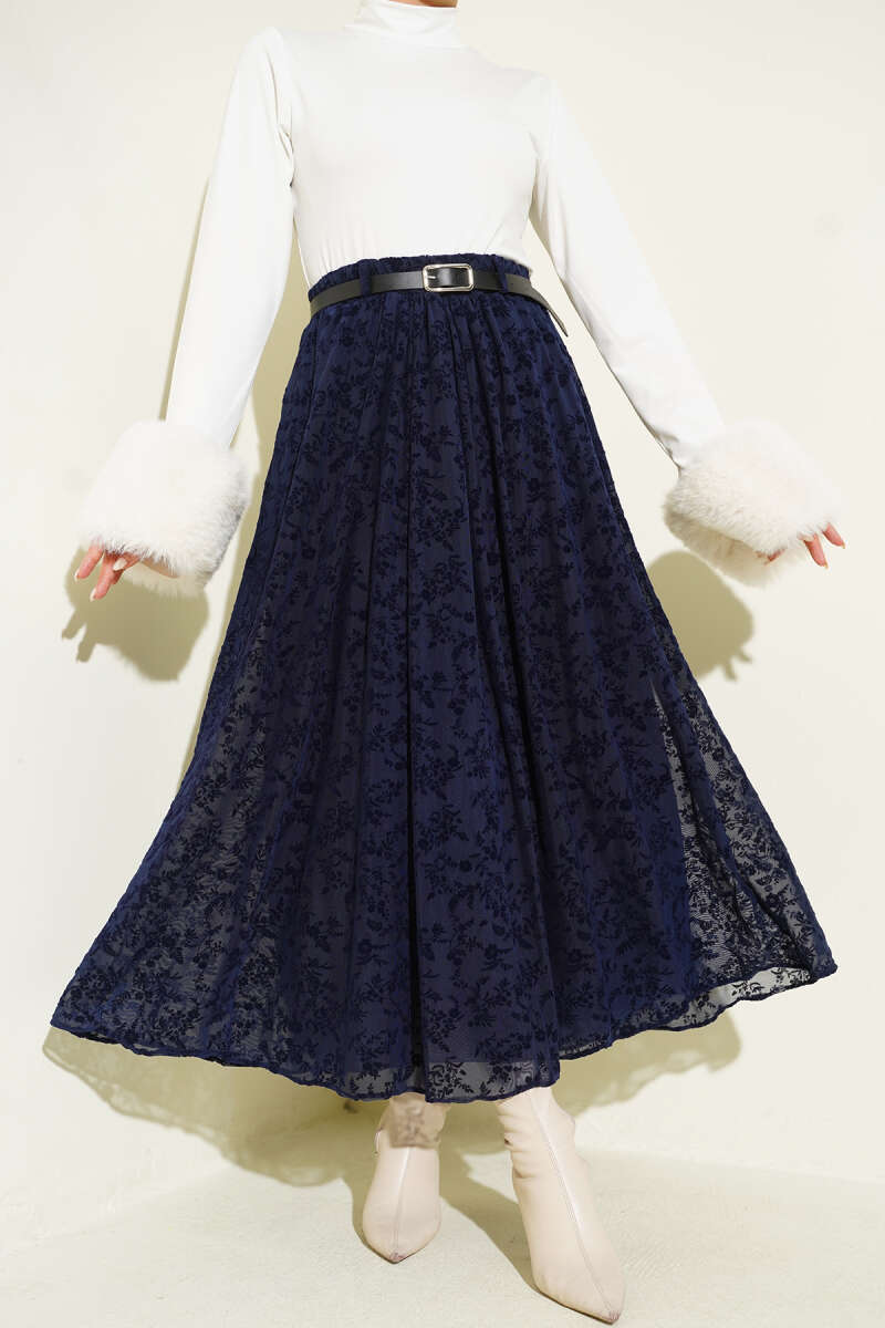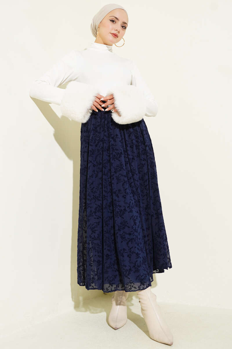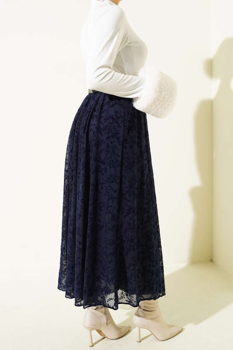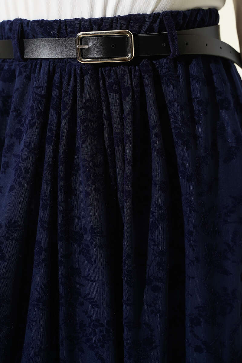 Çiçek Desen Tüllü Kloş Etek Siyah