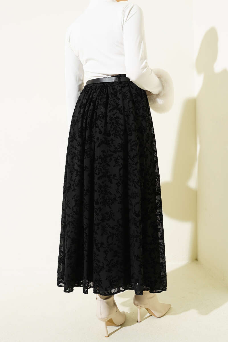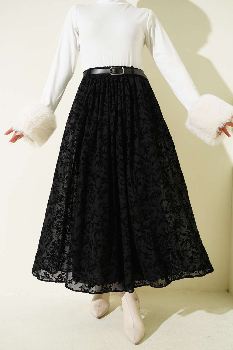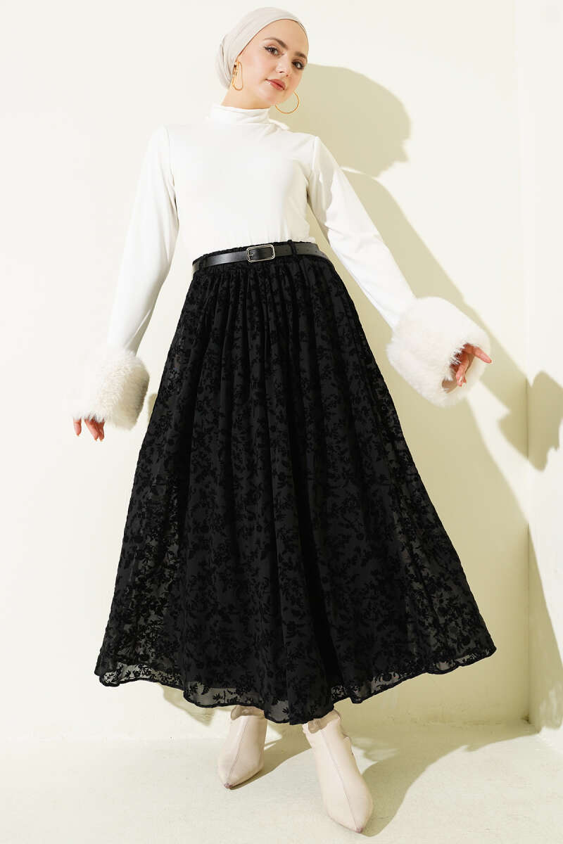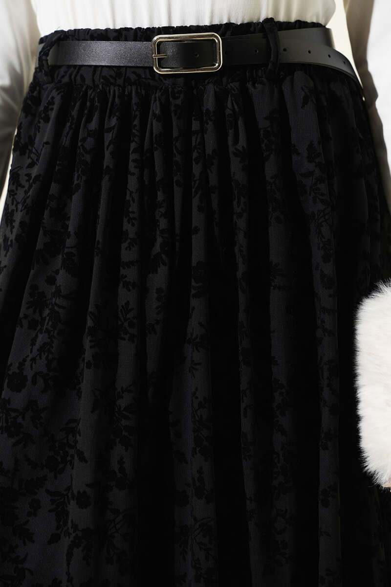Ekoseli Kemerli Çan Etek Siyah
