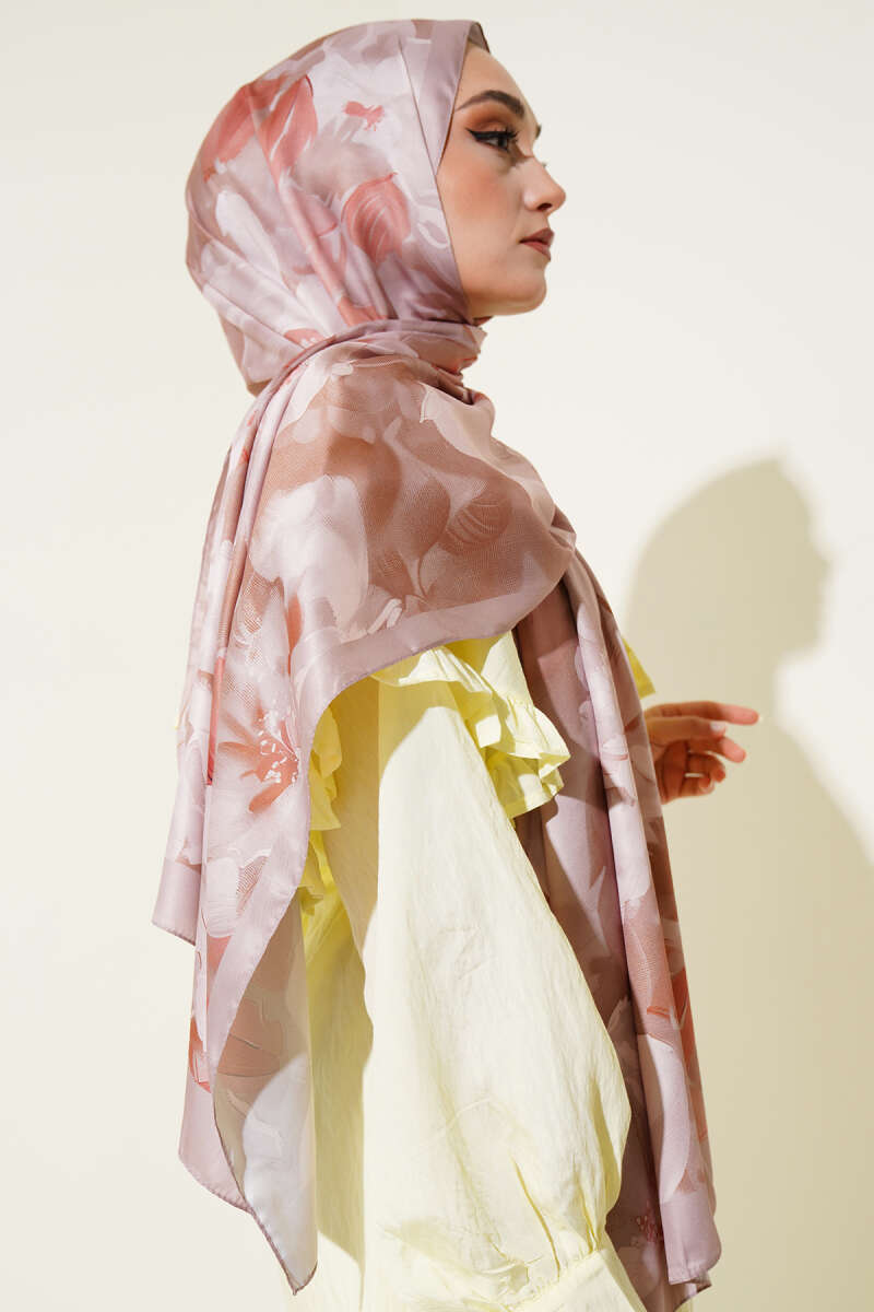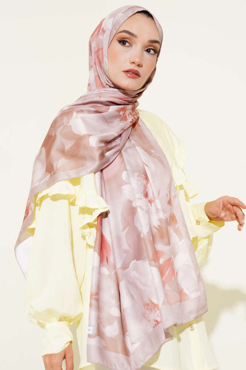 Çiçek Desen Twill Şal Vizon