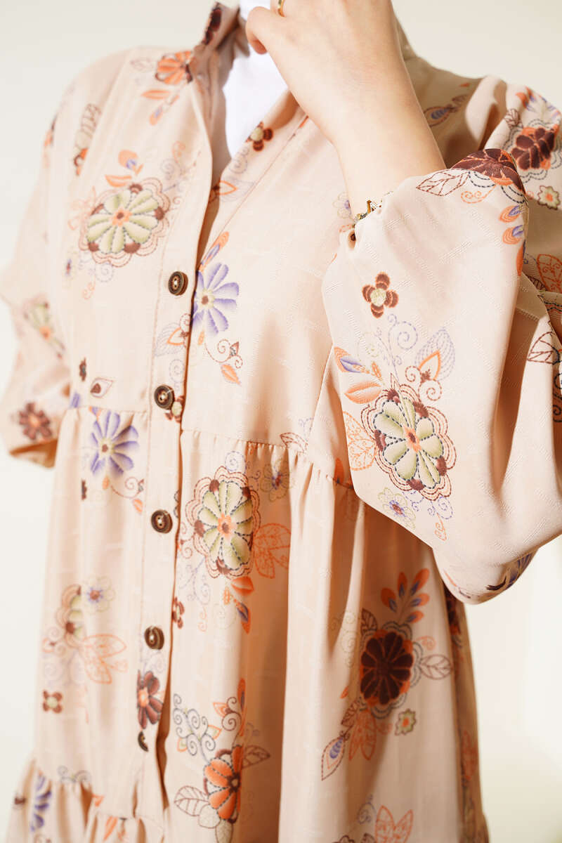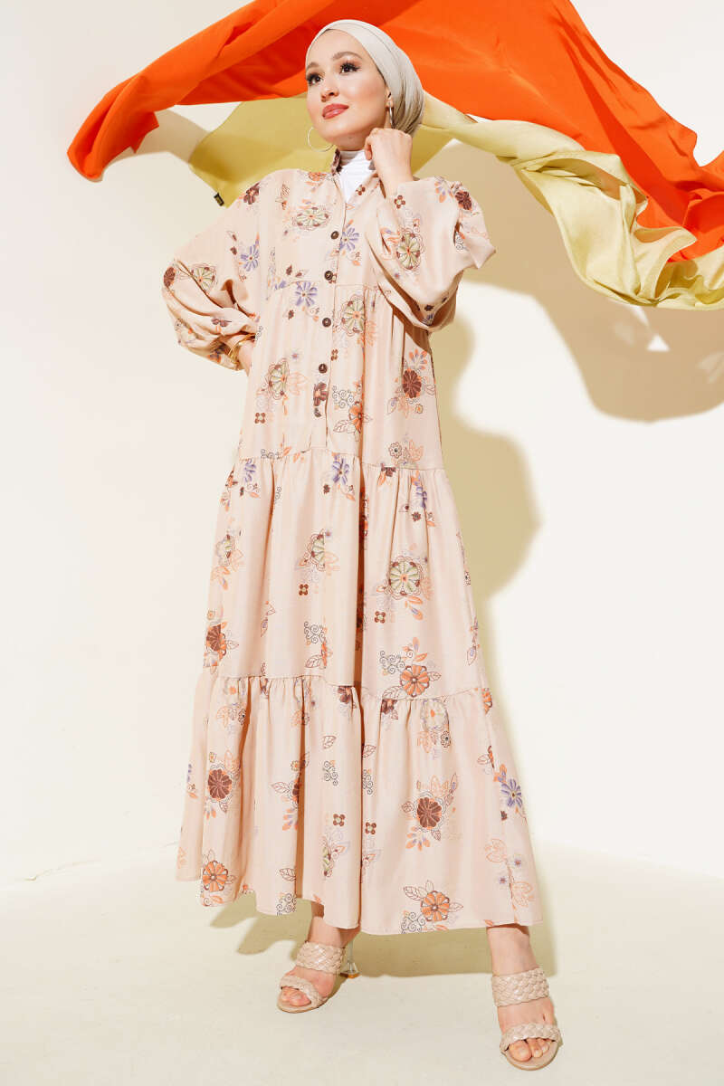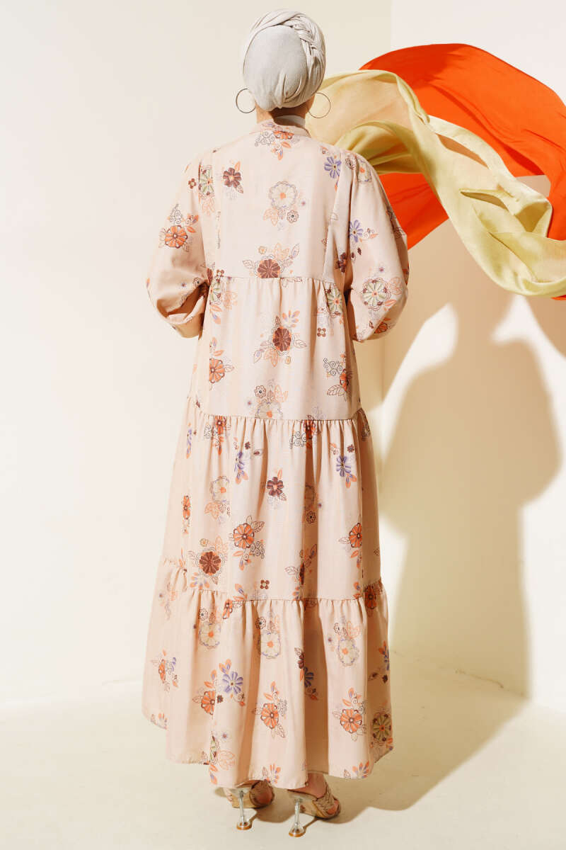 Kolları Fiyonk Detaylı Selanik Elbise Taş
