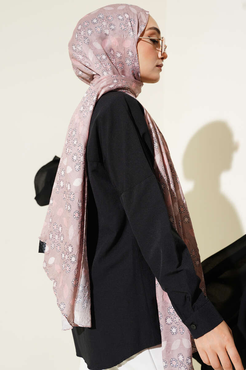 Batik Desenli Bambu Kraş Şal Siyah Bordo