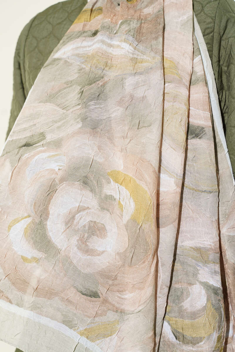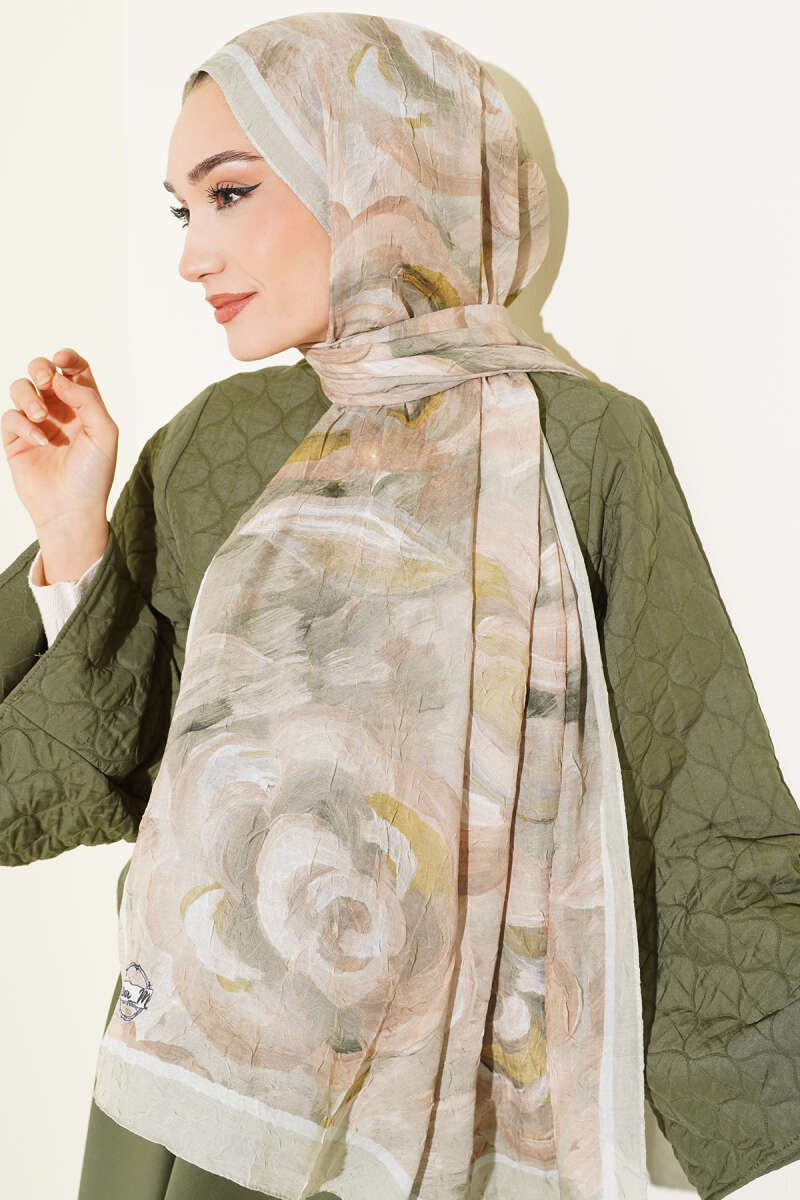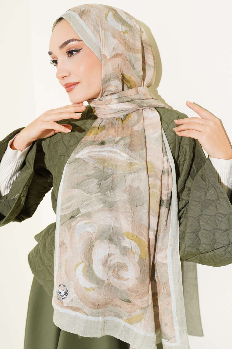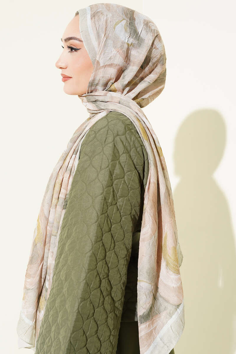 Ebruli Desenli Bambu Kraş Şal Haki