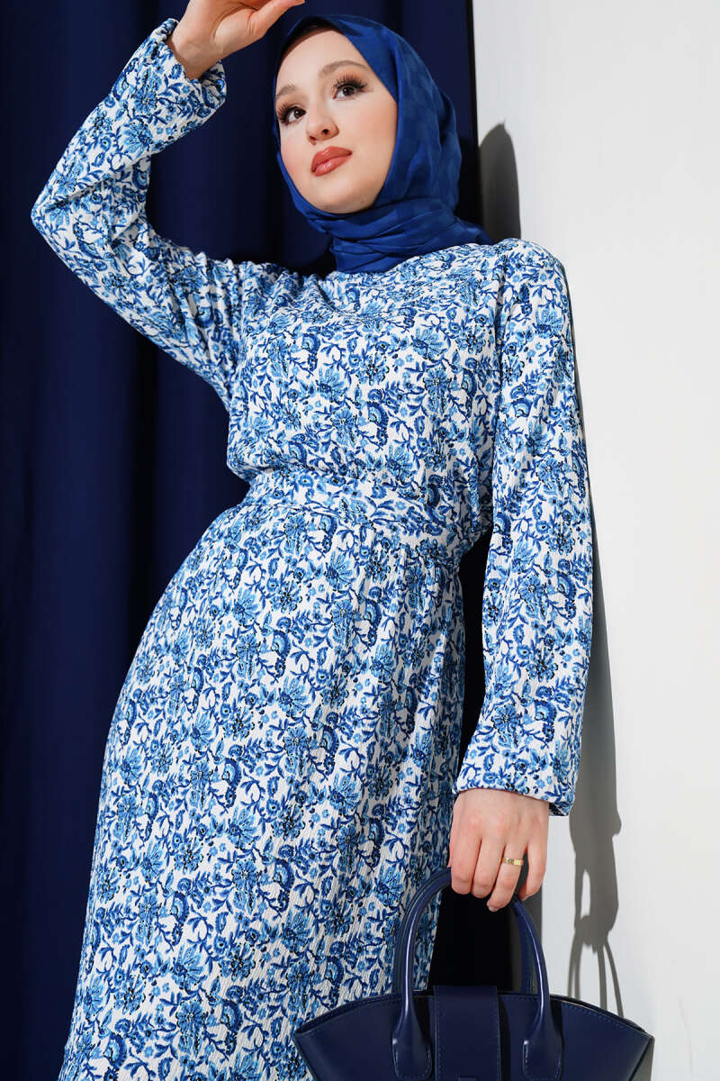 Yarım Yaka Fermuarlı Scuba Elbise Lacivert