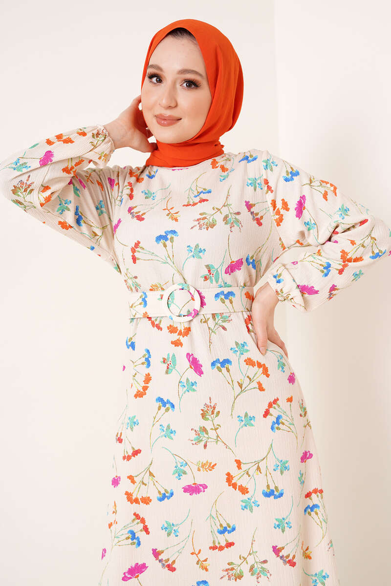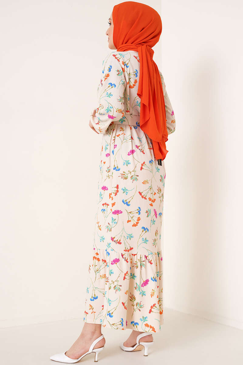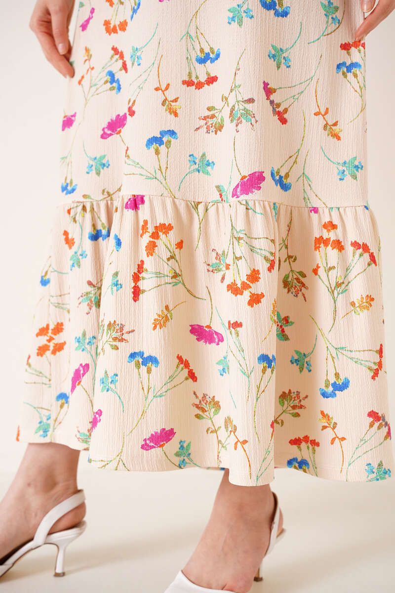 Çiçek Desenli Bürümcük Elbise Bej