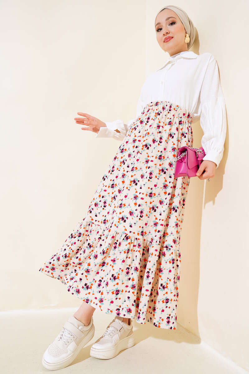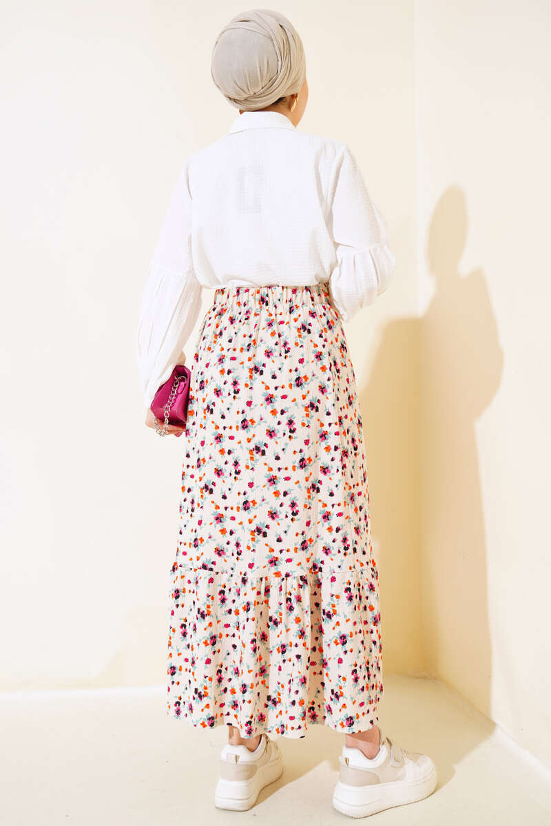 Çiçek Desenli Bürümcük Kat Etek Bej