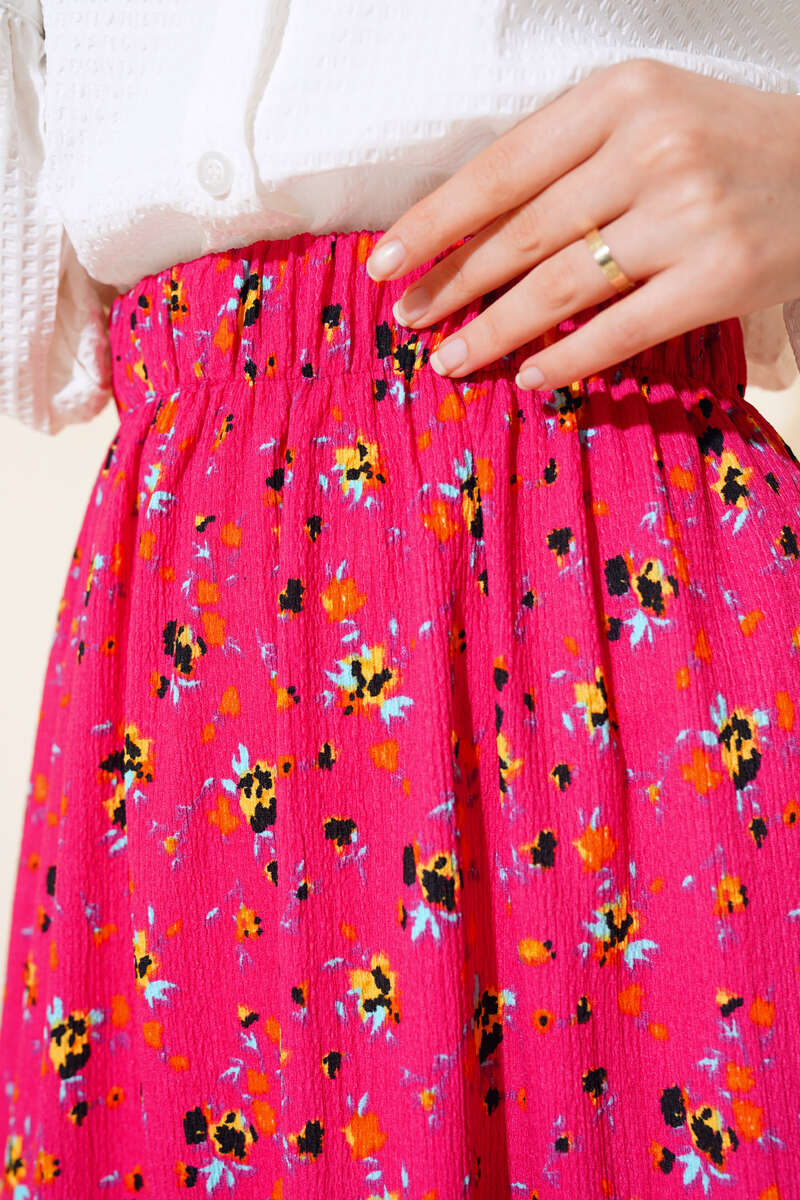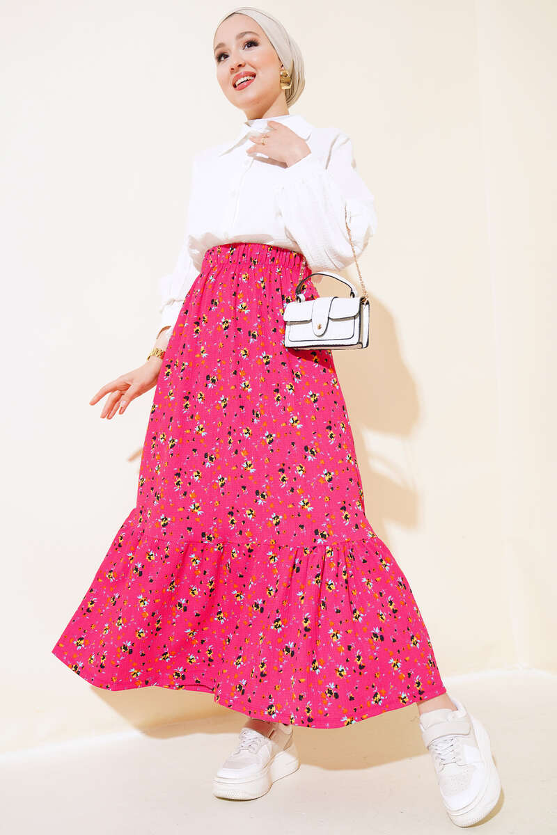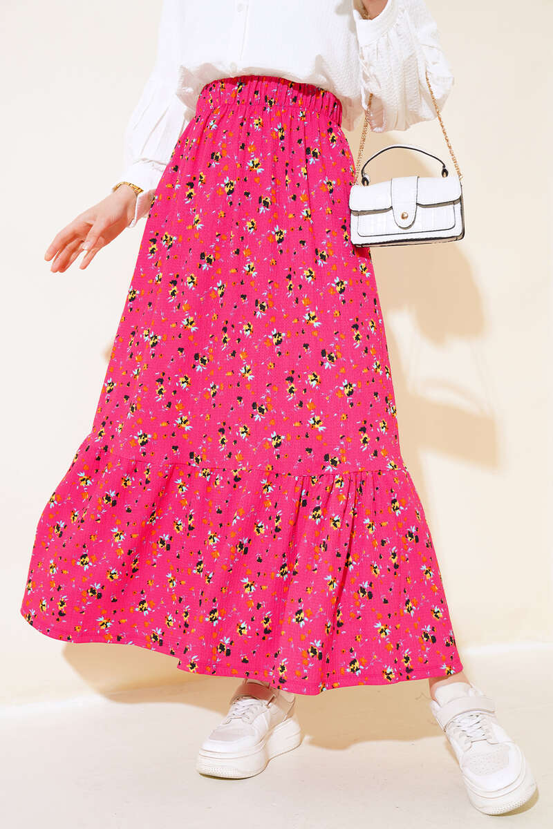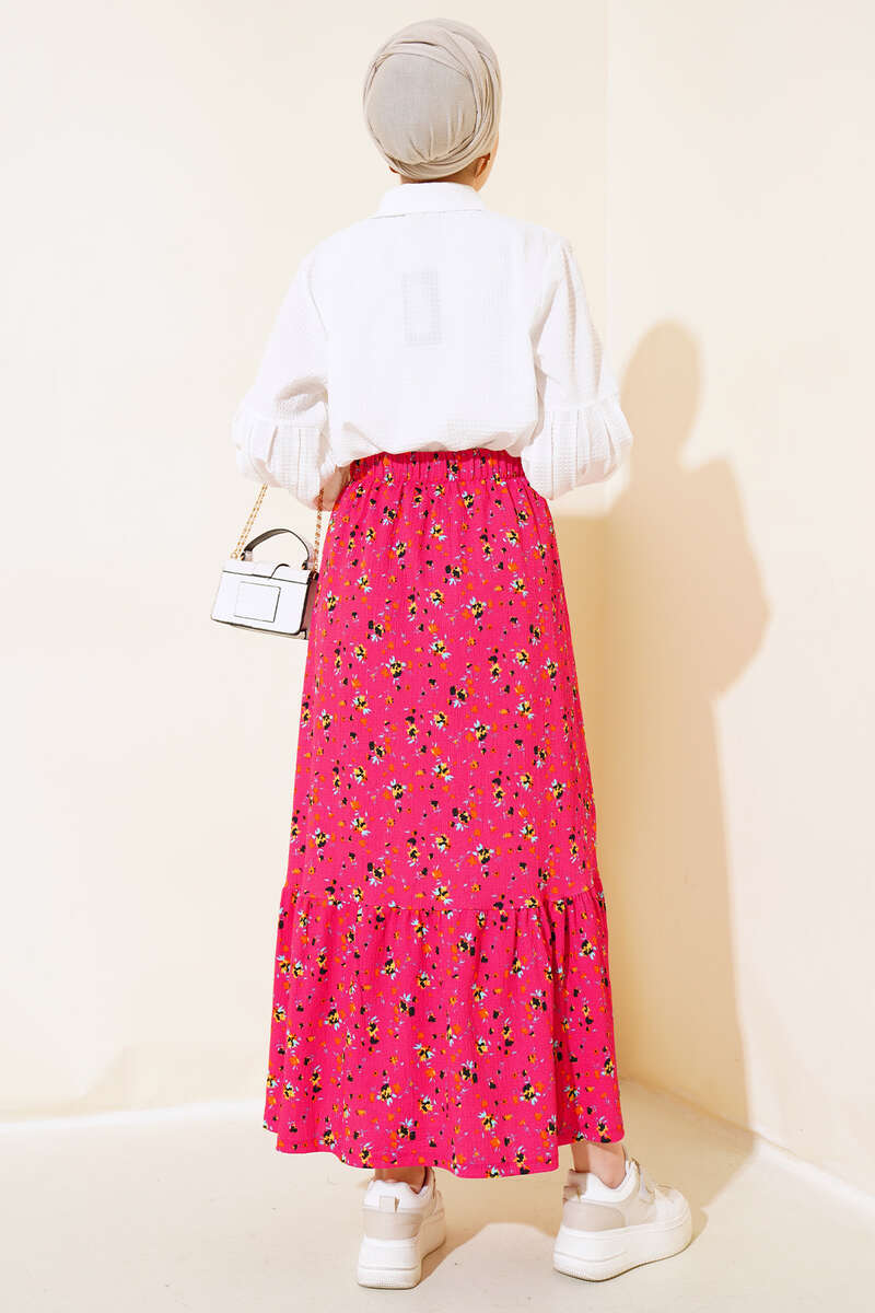 Çiçek Desenli Bürümcük Kat Etek Fusya