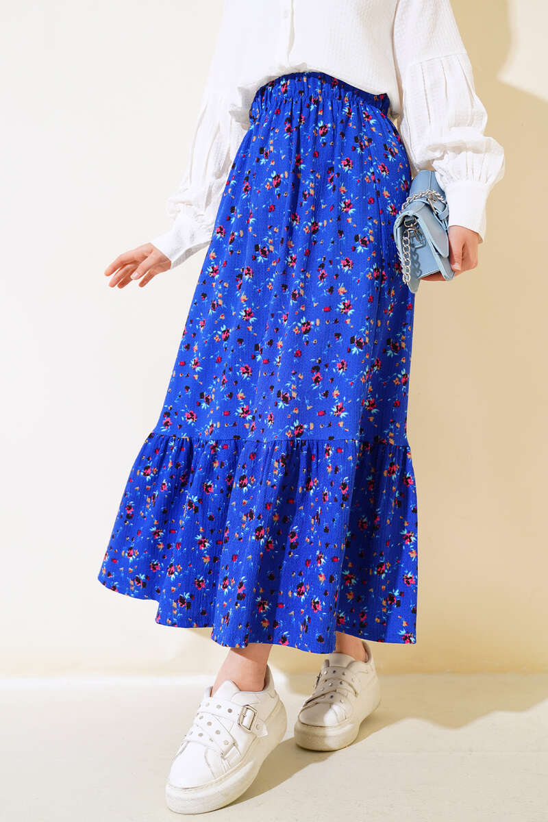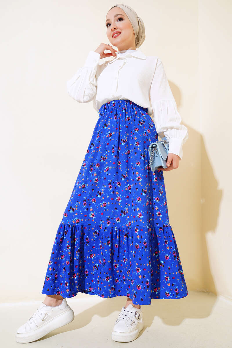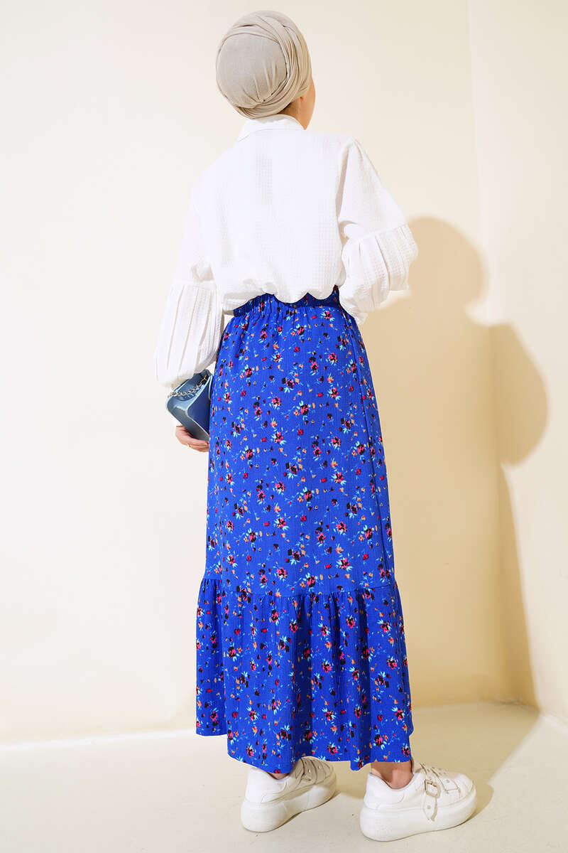 Çiçek Desenli Bürümcük Kat Etek Saks