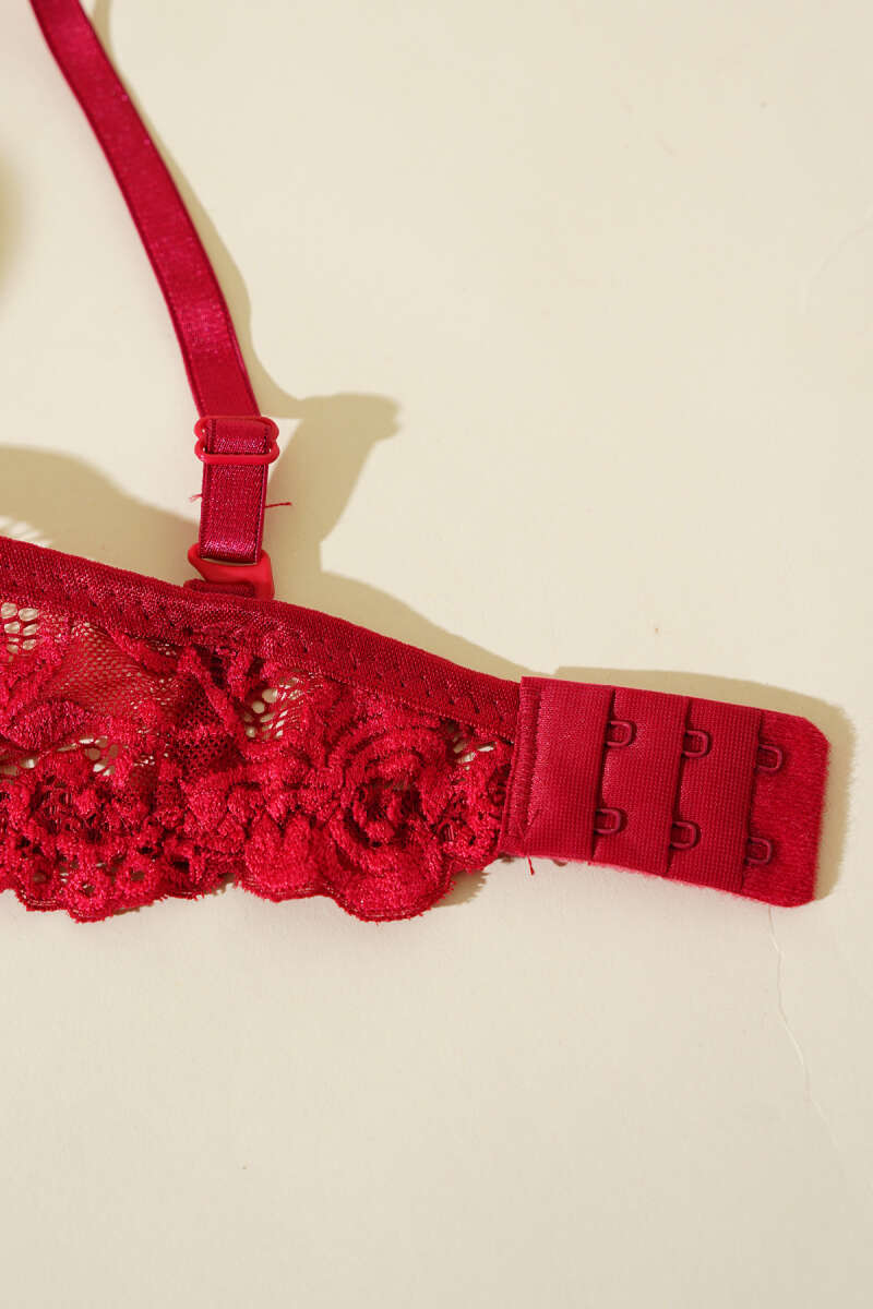 Çiçek Desenli Dantelli Destekli Sütyen Bordo