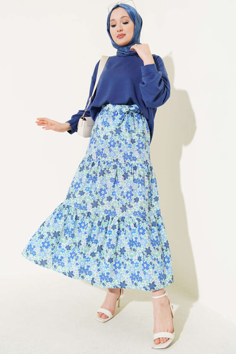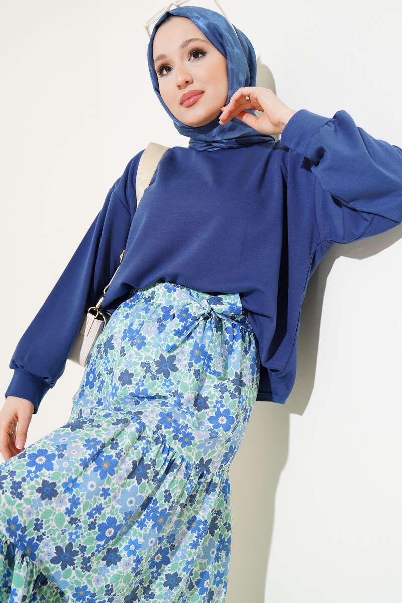 Asimetrik Kesim Bisiklet Yaka İkili Takım Mavi