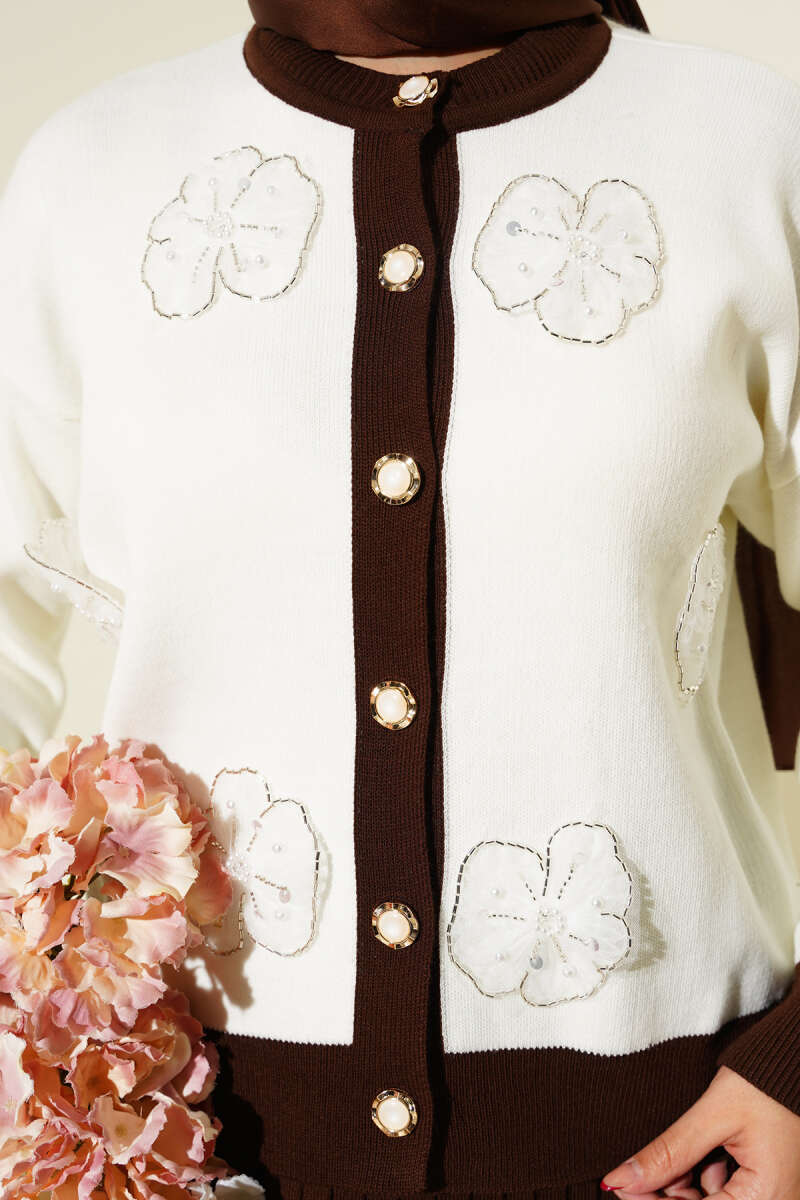 Çiçek Desenli Etekli Triko İkili Takım Siyah