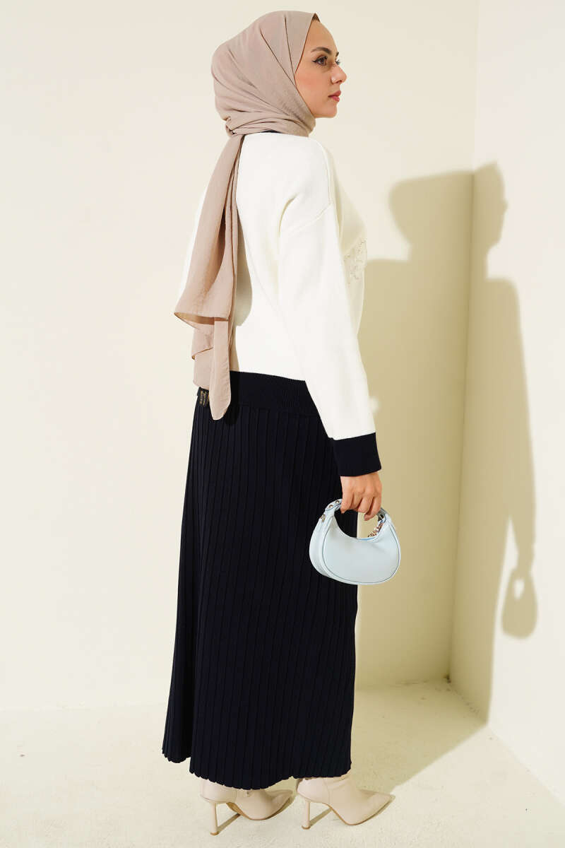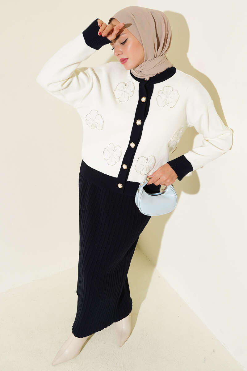 Çapraz Taş Süslemeli İkili Takım Lacivert