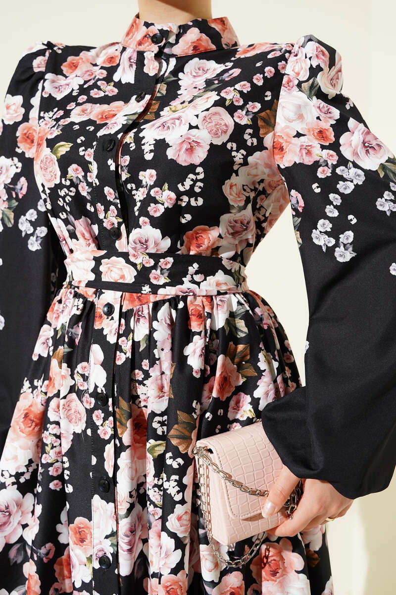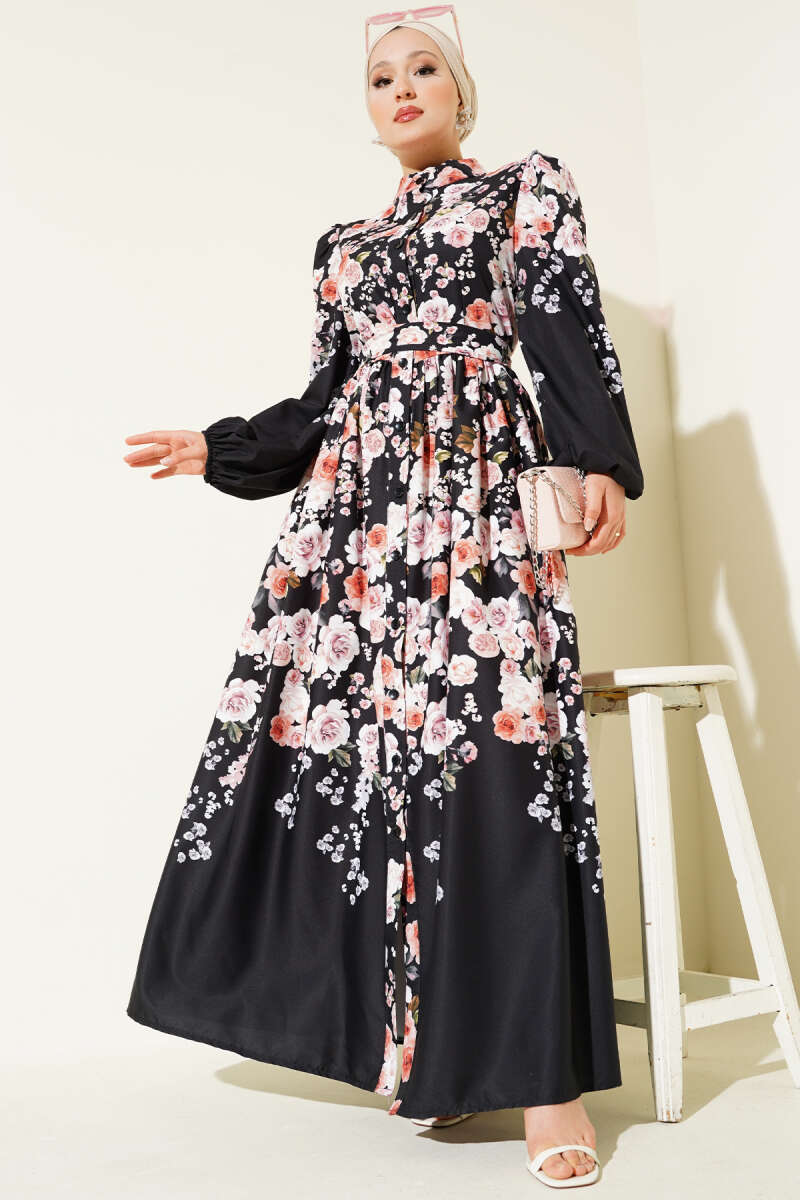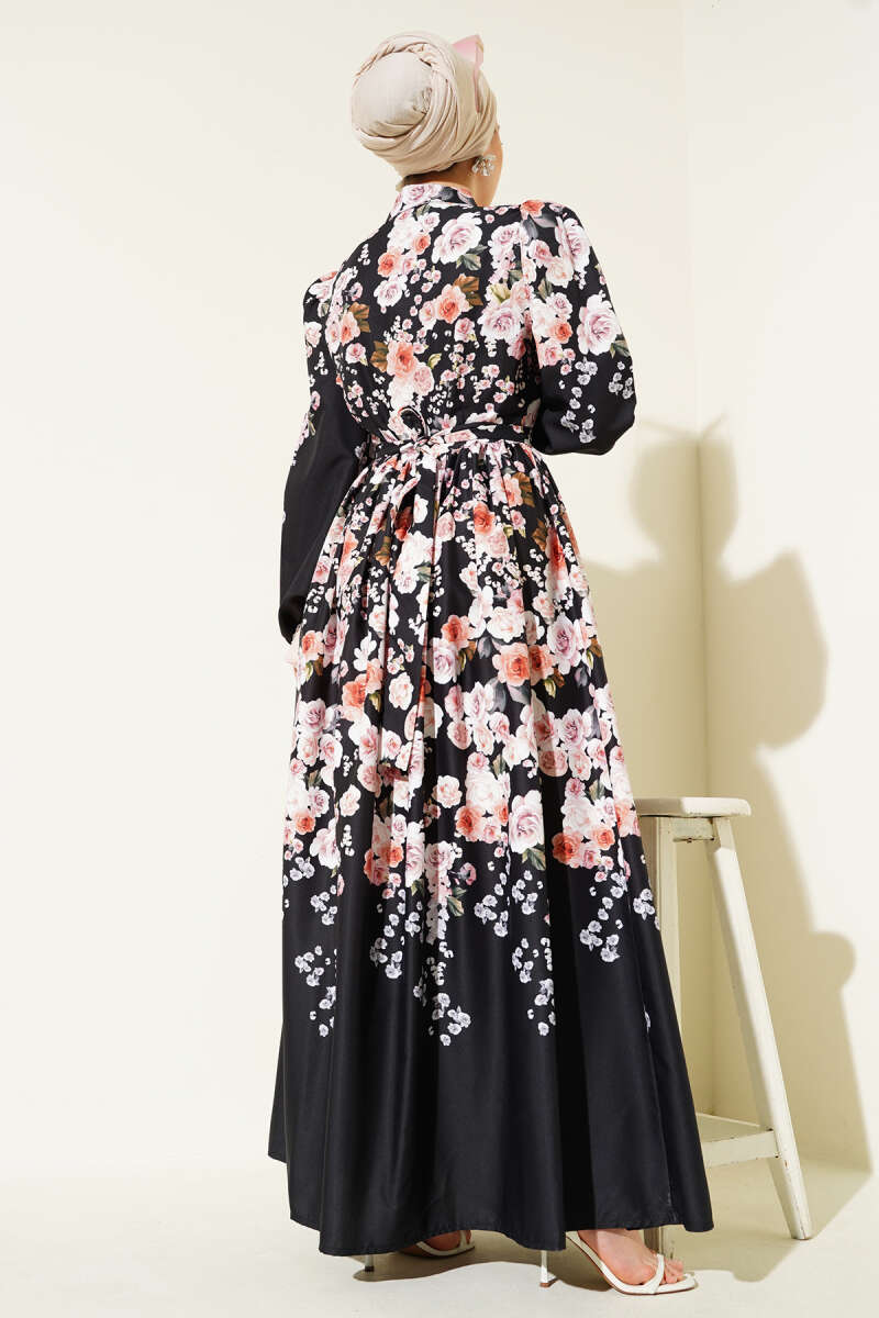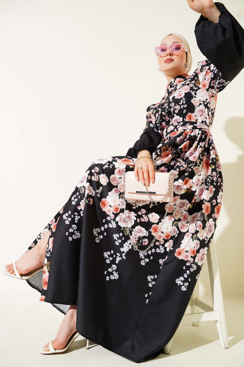 Bilek Bağlamalı Kuşaklı Abiye Elbise Siyah
