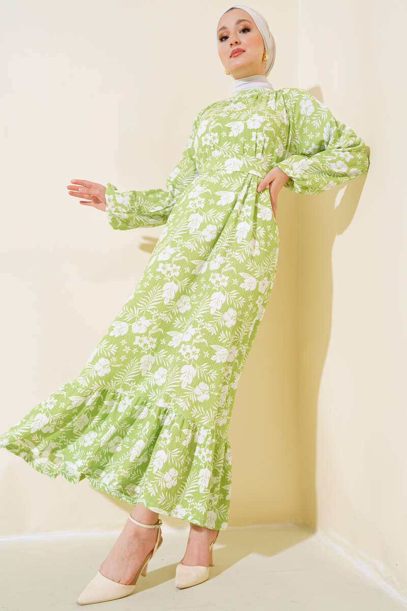 Yeni sezon elbise modelimiz sizlerle beraber. Elbisemiz oval yakadır. Enseden düğmelidir. Elbisemizin kol bilekleri lastiklidir. Kendi kumaşından kuşağı vardır. Astarsızdır. Kat modeldir. Çiçek desenleriyle şıklık kazanan elbisemiz yaz ve bahar aylarının favorisi olacaktır.