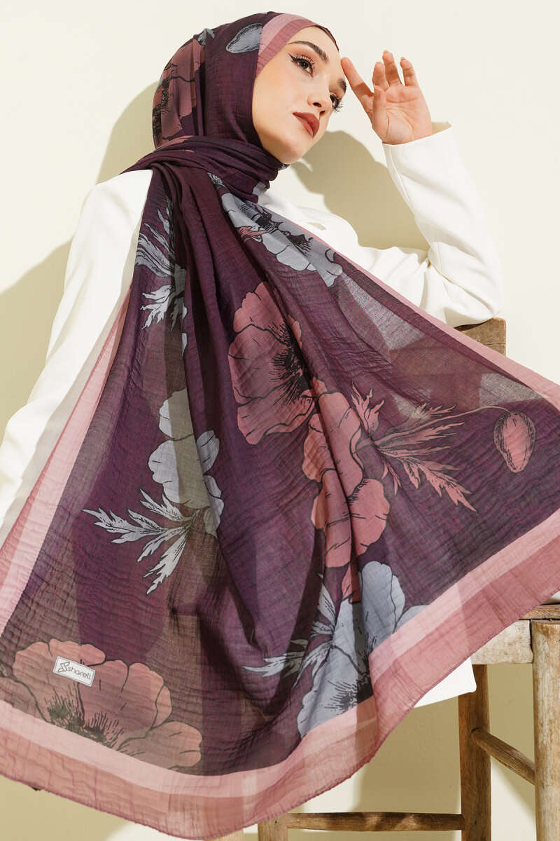 Geometri Desen Flamu Cotton Eşarp Vizon