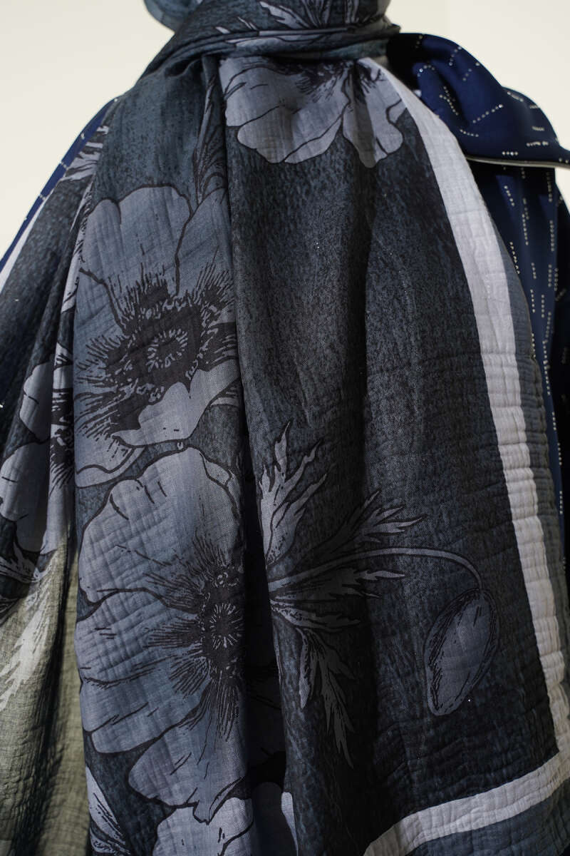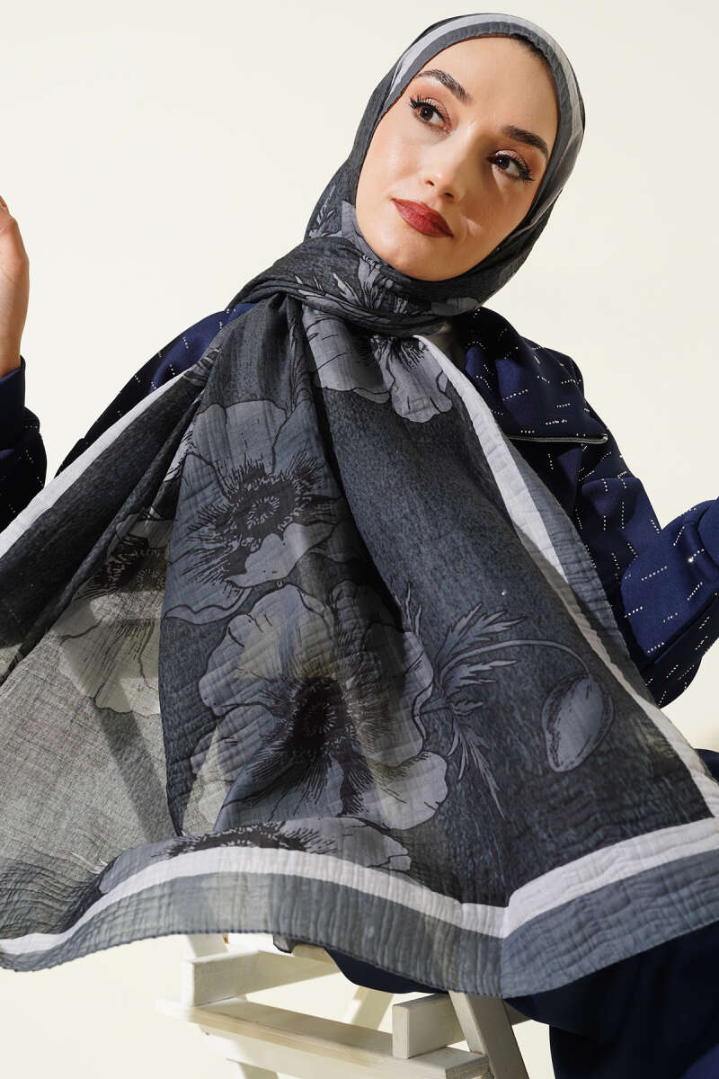 Çiçek Desenli Müslin Şal Kayrak Grisi